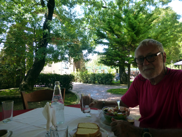 It was in a quiet square so we sat down for a pause and coffee. A girl working there offered to take our photo when she saw lou taking one….of me!!! Lou gave in gracefully and even smiled. She then chatted away about croatia and good places to eat elsewhere in the town. We had already booked for the evening and she suggested certain tables and to be sure to get the waiter who explained the menu as he was so amusing!