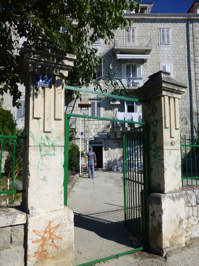 We read menus and opted for one that offered a platter of dalmatian charcuterie. It was very good, especially the venison saucisse. Afterwards, our mission was to return to ‘mihaela apartments’ and take photos. Lou’s idea and a good one.