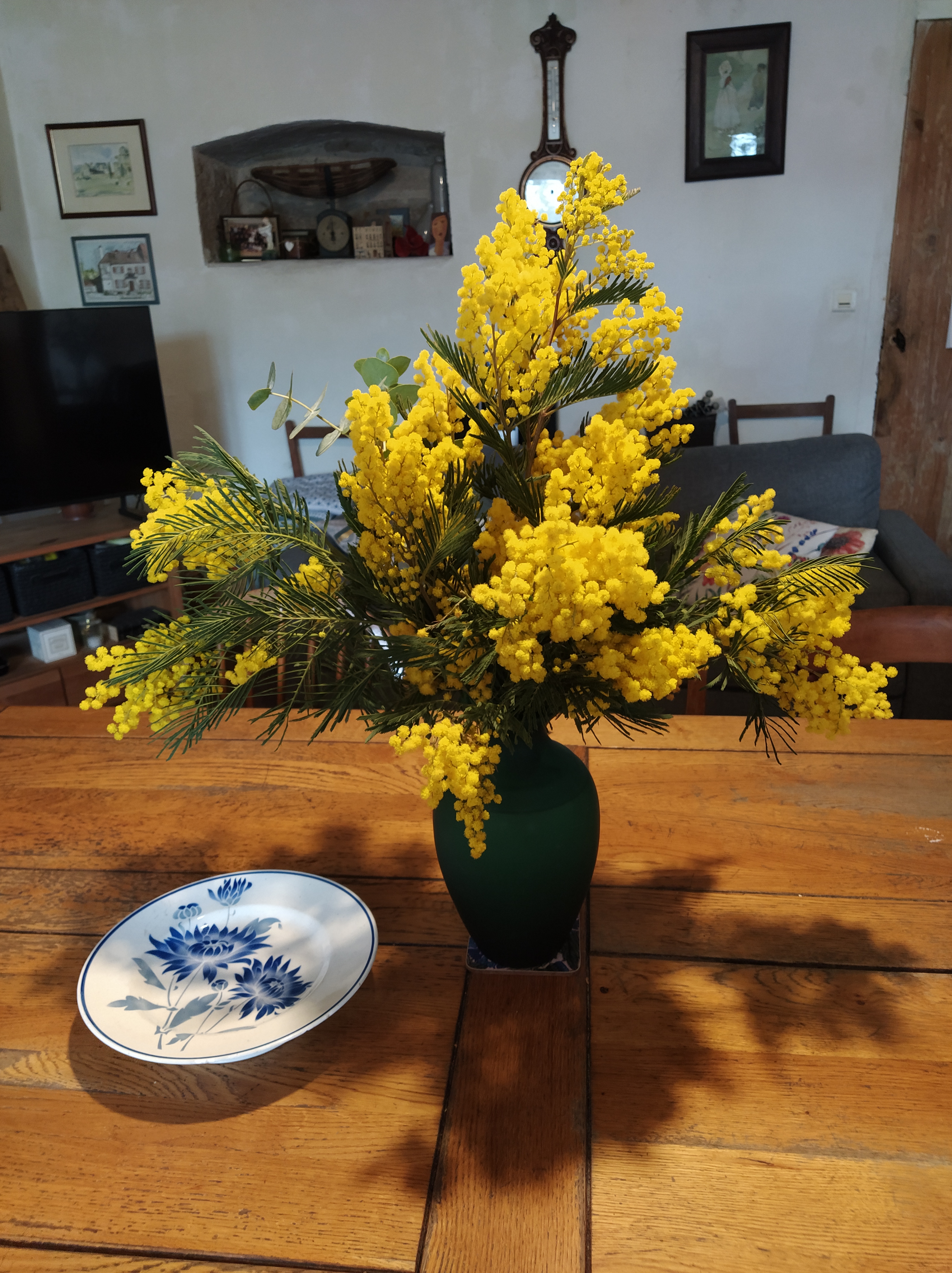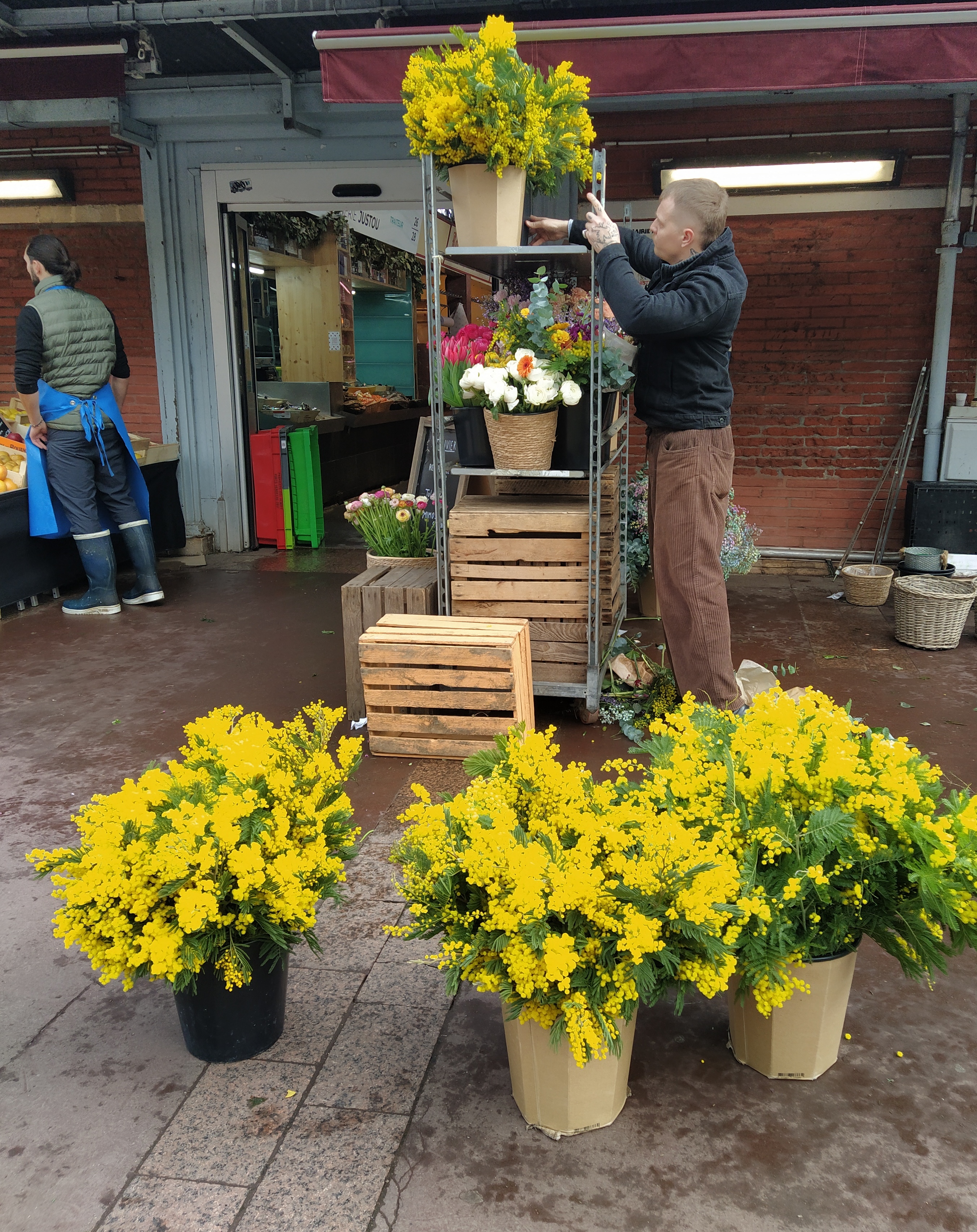But first, the photos! We had a sunny and dry drive south which was unexpected as the forecast was for showers. Parking was easier than last time so fewer stairs to climb. After choosing and booking our hotel I had discovered their carpark was closed for a month for improvements so, leaving our bags in the car for collecting later, we went to find lunch. There was beautiful mimosa outside the Halle as we headed to ‘our’ bistro.