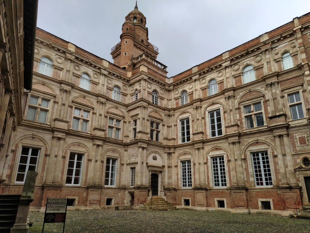 I’ve written before about Les Abbatoirs and le Chateau d’Eau, two interesting exhibition spaces in buildings originally created for quite different purposes. The Musee Bemberg is more traditional in as much as it is in a grand renaissance mansion called the Hotel d’Assezat now housing the collection of Georges Bemberg, a twentieth century Argentinian collector. The house was built in the 1560s by Nicolas Bachelier, a Toulousain architect, for Pierre Assezat, a woad merchant. Woad, or pastel as it is called in French, was a major trade all over Occitanie as we discovered years ago on a visit to Albi.