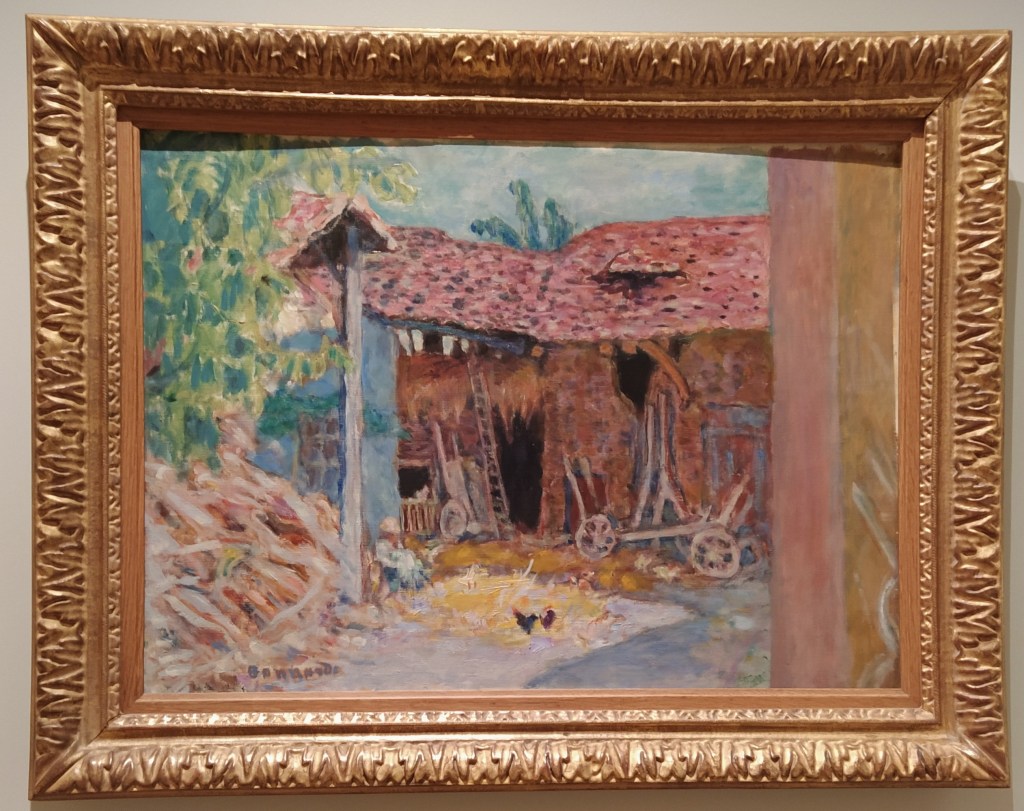 I was surprised that I wasn’t as smitten by the Bonnards as I expected to be. They are hung in chronological order so it was interesting to see his artistic progression. A farmyard was my favourite. The saddest was a self portrait painted not long before he died.