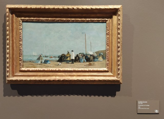I had started my tour in salle 12 with the Bonnards but that is actually the last room according to the ‘sens du visite’ so I ended up doing the tour in reverse but clear introductions to each room avoided any confusion. This painting by Eugene Boudin entitled ‘Crinolines on the beach’ amused me as you can really feel the blustery day discombobulating the ladies as they grabbed their skirts. There is even an overturned chair as witness to the strength of the wind.