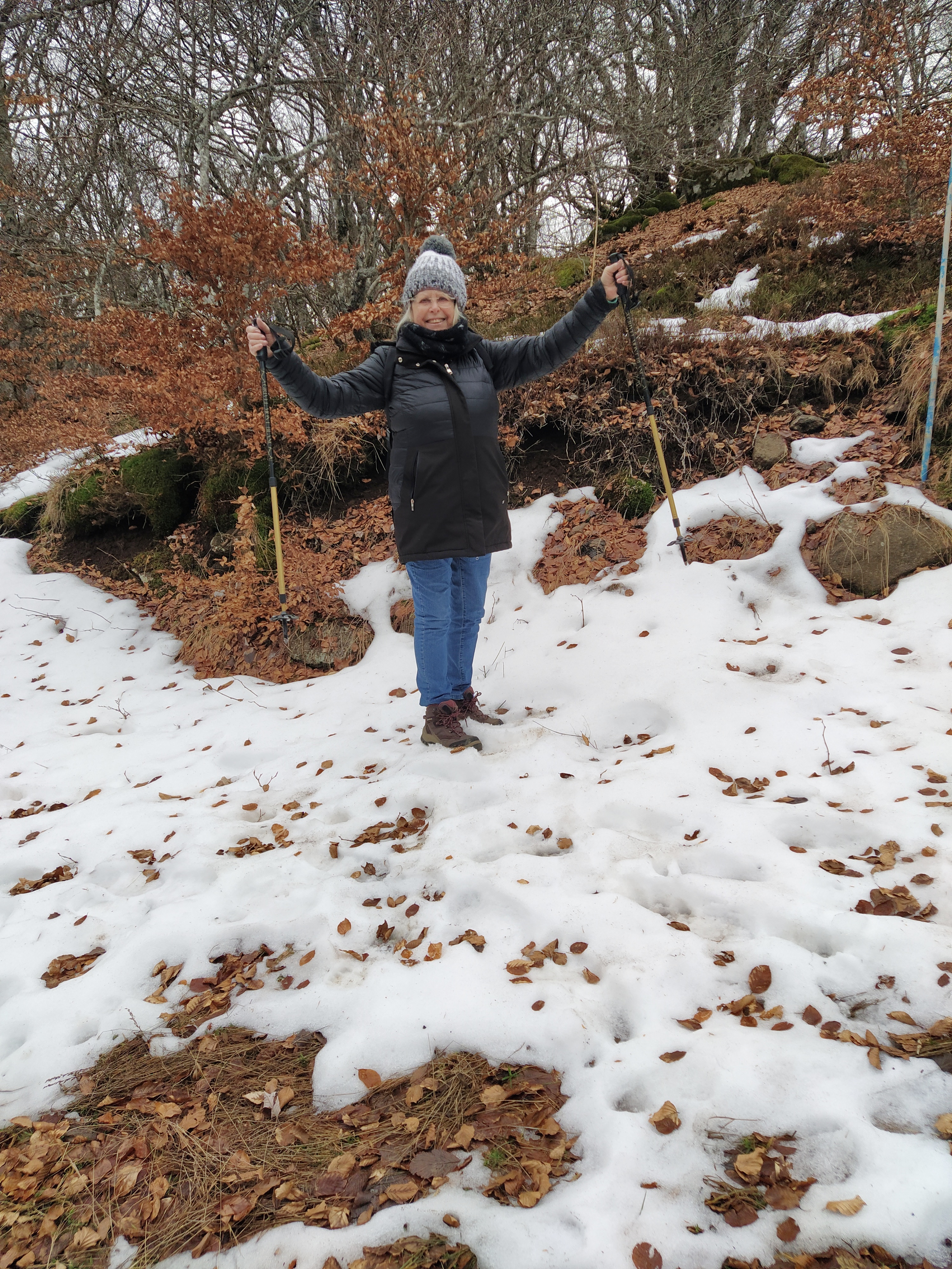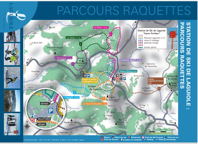 Despite his balance problems Mr McGregor really wanted to return to his traditional snowy (or not) birthday walking. Our most recent and nearest favourite station de ski can sometimes necessitate putting on snow chains (cripes) and has pretty challenging terrain but I remembered that we once did a day trip to Laguiole ski station and walked a raquettes piste there. Not impressed as it was fairly flat and not very picturesque we didn’t return. Now it seemed a better option.