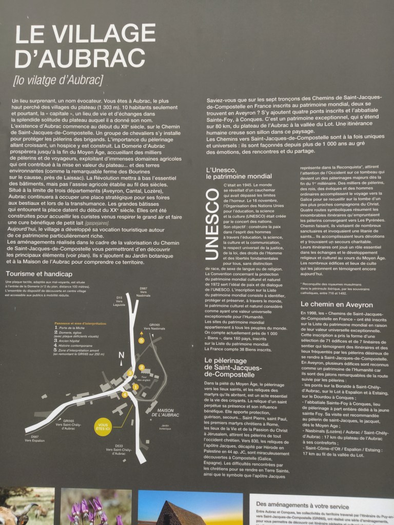 The Maison du Aubrac was closed for the winter so I was pleased to find an information board which told me there are only ten inhabitants in Aubrac now and that many agricultural workers who migrated to Paris from the area in the 19th century opened up cafes which are still operating today.