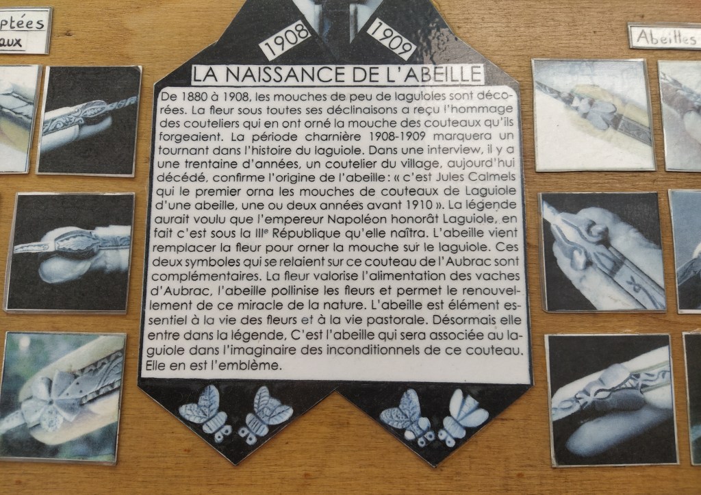 Interestingly, the day after we got home, there was an article in la Depeche du Midi, our local paper, about the ongoing argument about the true ownership of the Laguiole label, Laguiole or Thiers. The factory we visited and the shop we bought from both appeared as two of the main Laguiole protagonists!