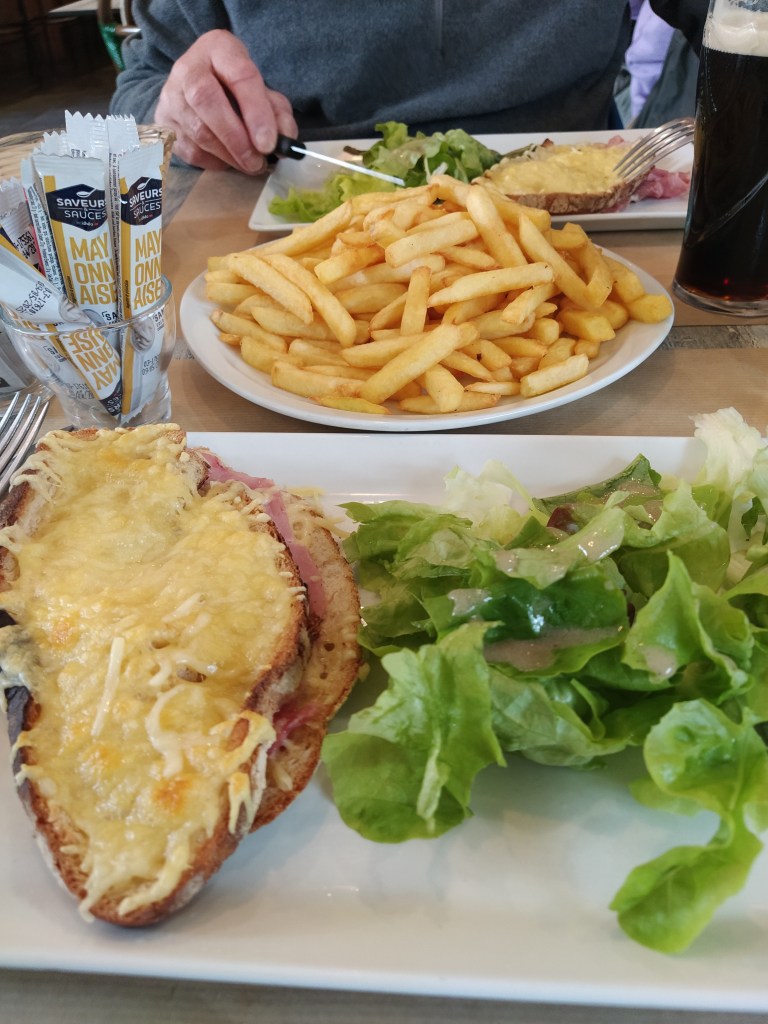 It was crowded inside and people kept arriving all through our meal; croque monsieur and a plate of the best chips we’ve eaten in a long while. Himself had a Guinness as he discovers the perks of not being only the driver anymore!