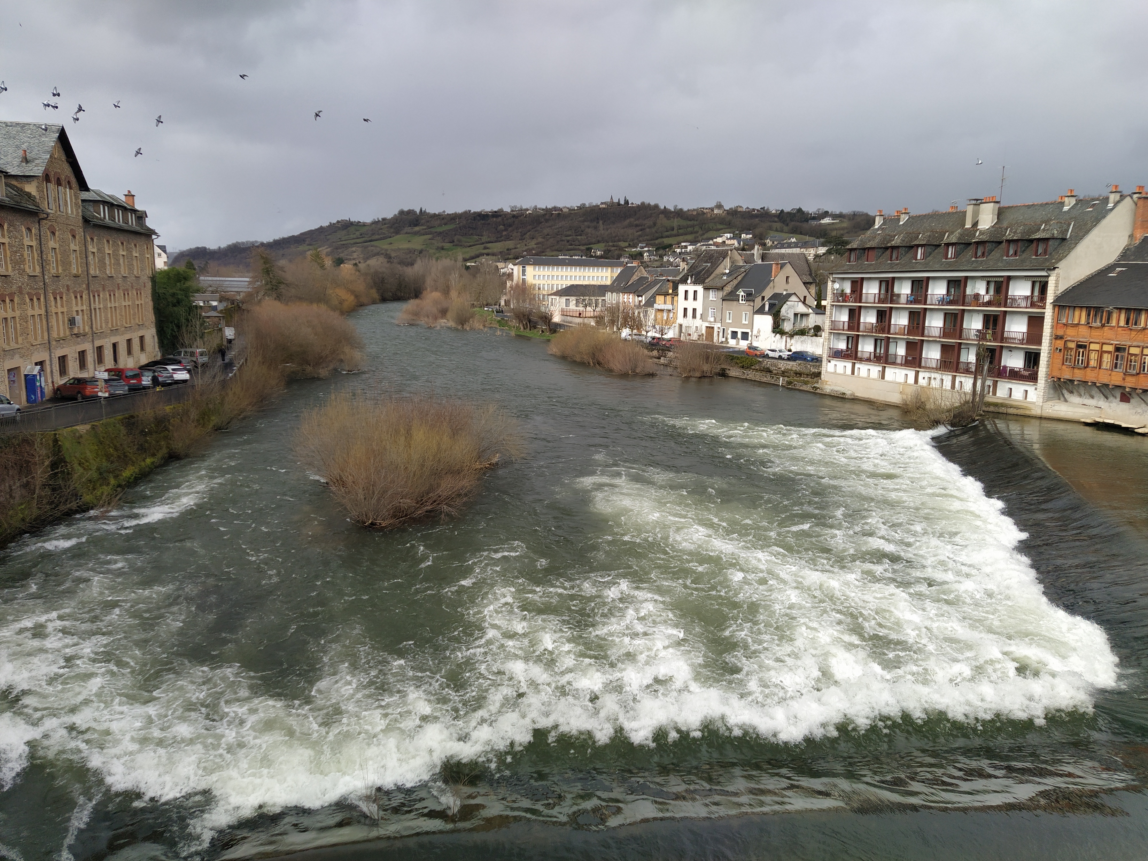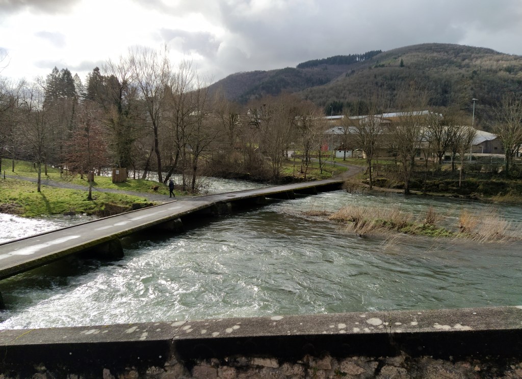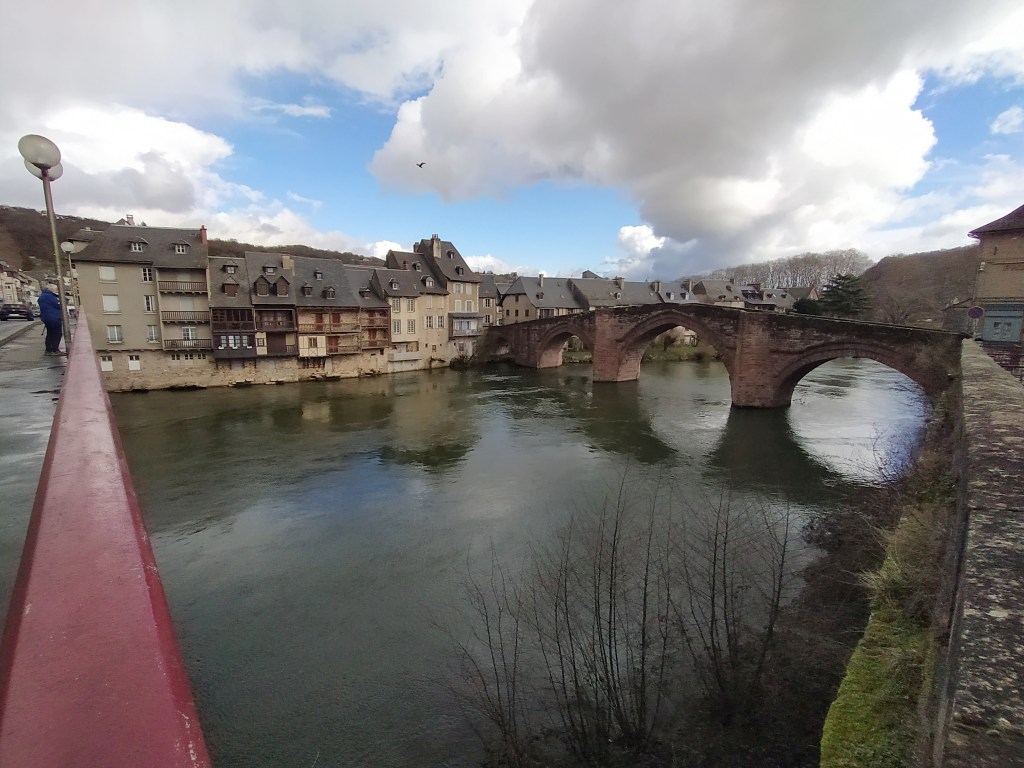 At Entraygues we found a bar on a pretty ‘place’ filled with elderly clients chattering over their coffees with just enough space for us to sit. Probably saves on the heating at home? To return to the car we walked the signposted ‘visite de vieille ville’ with lots of little alleyways and arches. No wonder our friends love camping here in the summer.