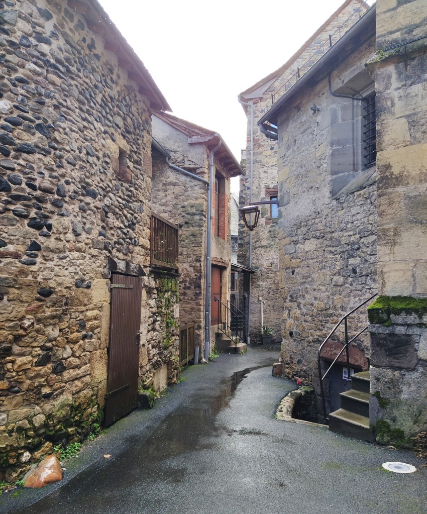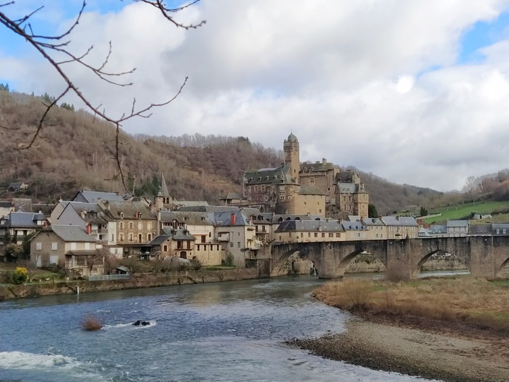 Outside it was still damp and grey. We decided to drive down to Espalion and look for lunch there. The Plus Beau village of St Come d’Olt that my neighbours told me we should visit was just along the Lot river.