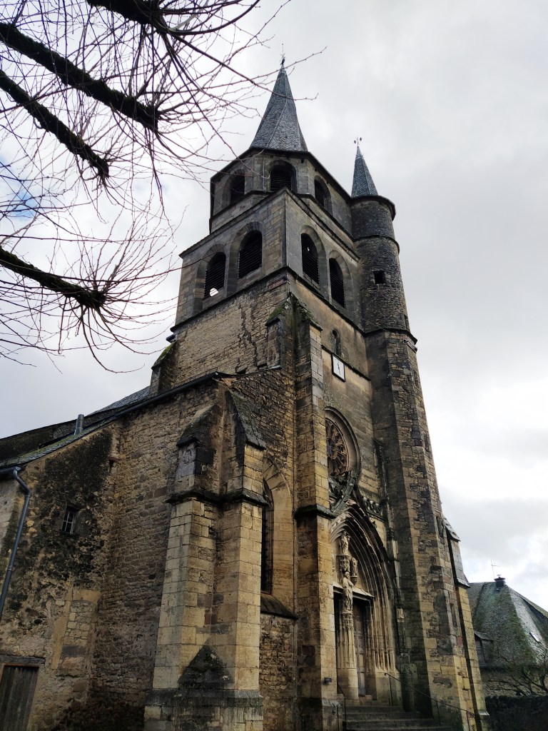 At St Come d’Olt it was almost impossible to find a parking space. Given it was still raining on and off and so not conducive to wandering, I parked on the side of the street and, leaving himself to mind the car, I ran into the centre historic to take a photo of the celebrated twisted spire of the church.