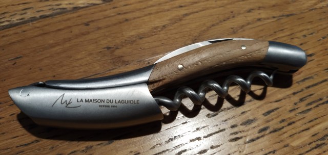 It was la Maison du Laguiole which had a good range of sommelier knives. Lou chose one with a cep du vigne ‘manche’. The wood comes from the stem and root of a vigne which seemed apt for the knife’s purpose. The prices were within our grasp and it was something that would be used.