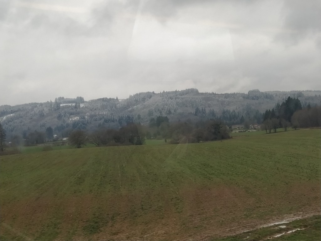 It was cold in Gagnac this morning, much colder than recent weeks, and we were amazed to see fresh snow lying on the embankment and forest as we traveled north of Limoges. Mind you, we had an elderly neighbour for years who always referred to the area around Limoges as ‘les montagnes’ whenever we spoke about bad weather on our journey down.