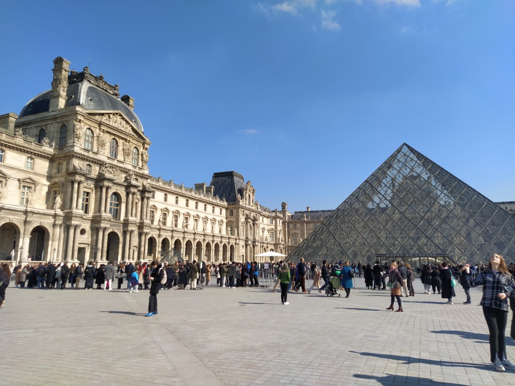 Afterwards a stroll down the rue de Rivoli as far as the Louvre where we decided we needed to catch a bus! Long queues around the courtyard and under the colonnades. Been there, done that…although there’s always more to see!
