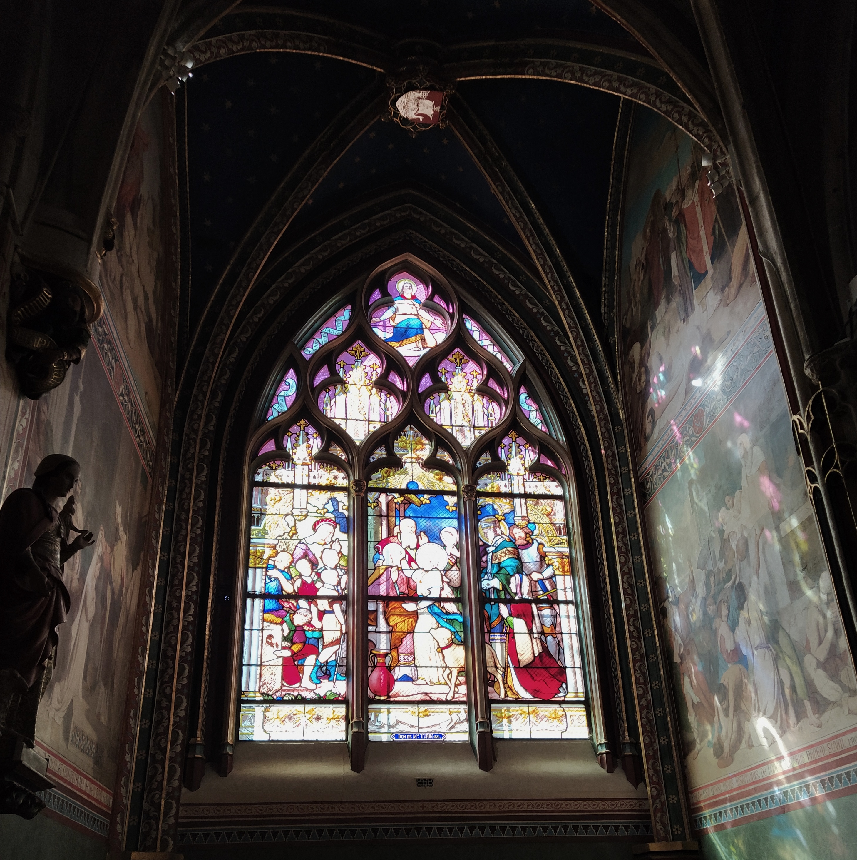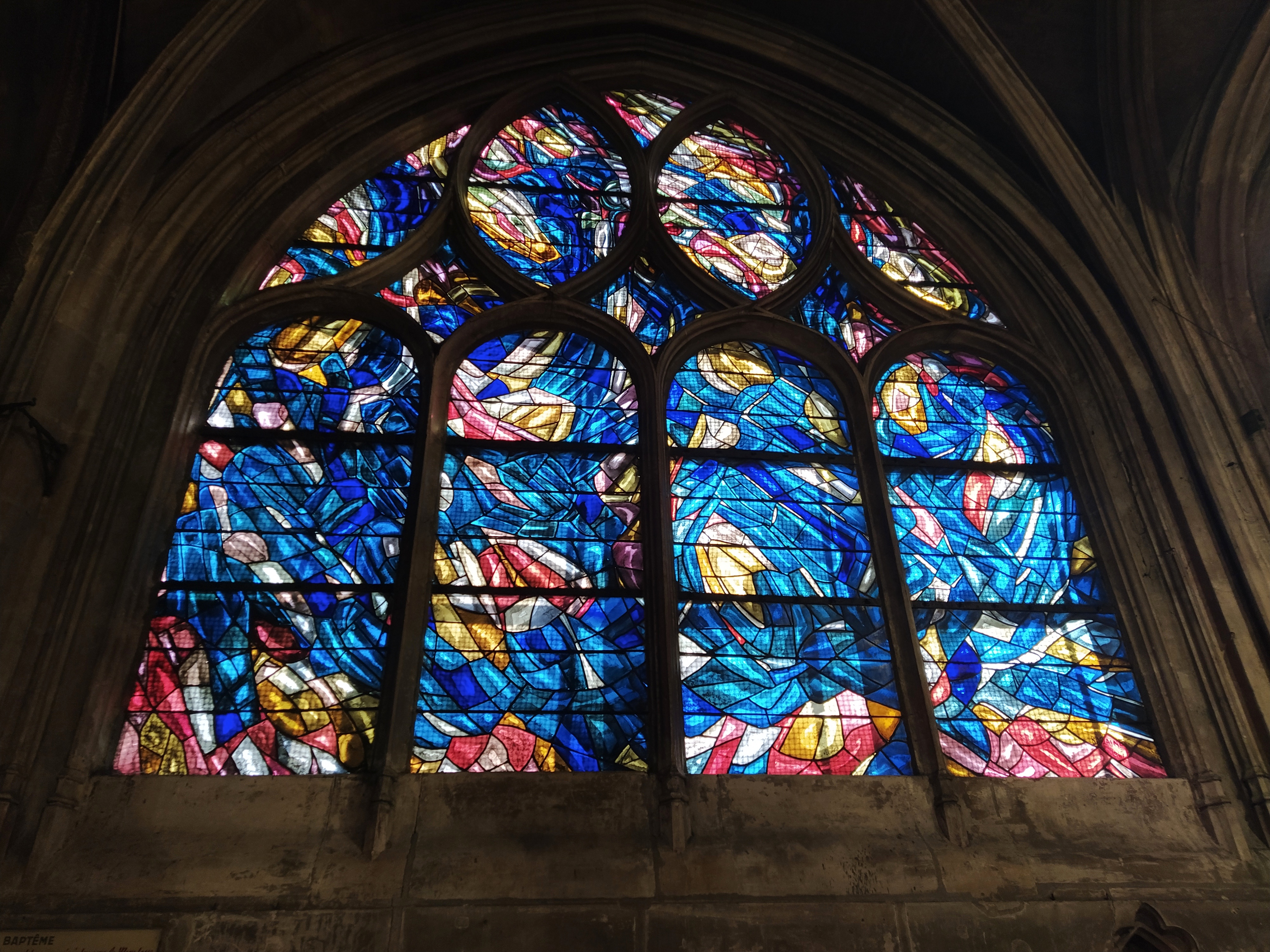 The earliest stained glass dates from the 14th century and the latest from the 1960s. These last ones were created by the painter, Jean Bazaine.