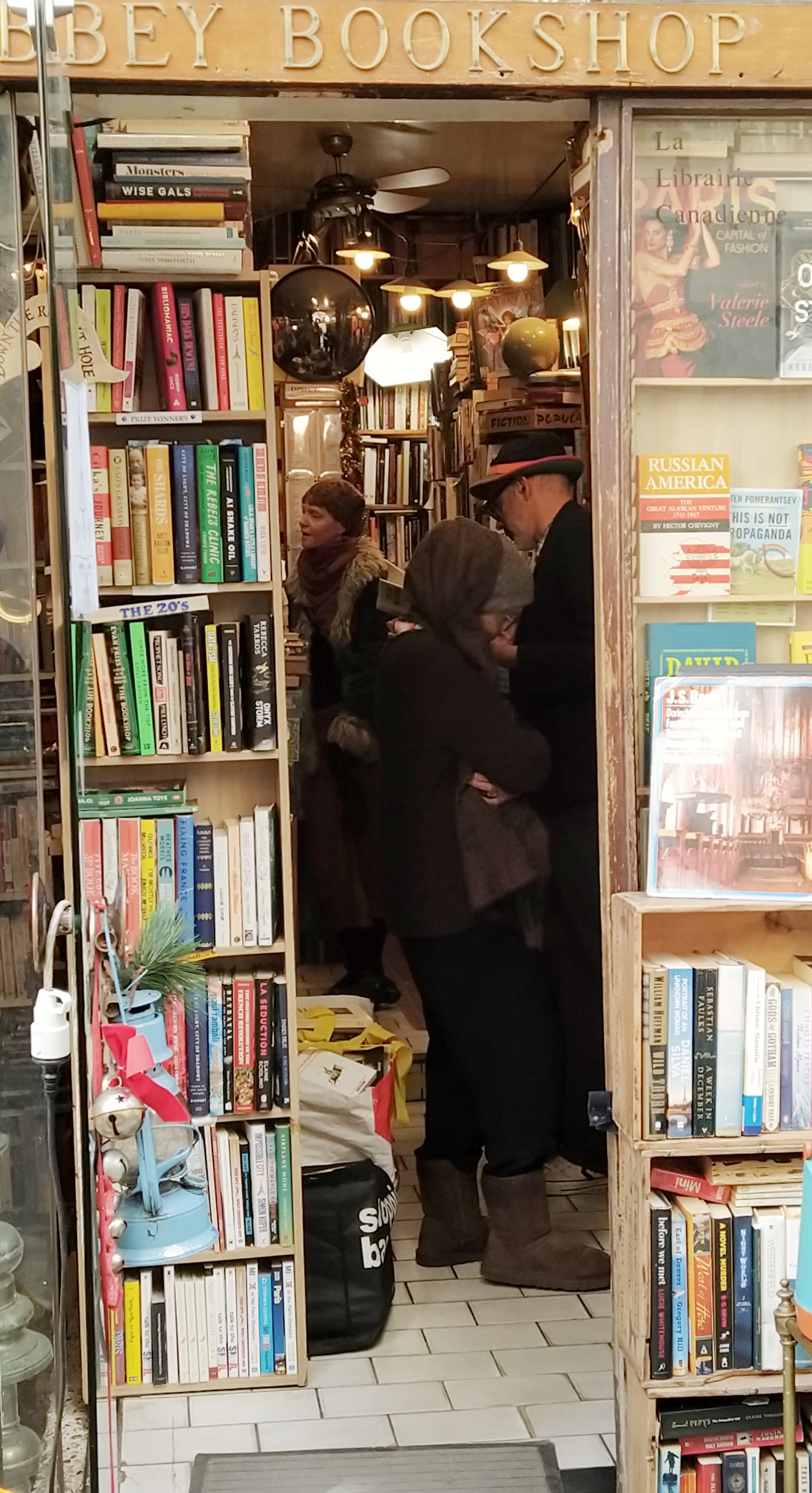 Disappointed yesterday at the poor pickings at Shakespeare and company I read with interest a sticker on a bin (as you do) advertising English books for sale. Back in our room I googled it and discovered it was on our way today. Seeing the enormous maple leaf flag waving outside it would be hard to miss. Finding the books was not as easy. The space inside the shop is cramped with shelves full of books literally from floor to ceiling. The owner, Google says a Canadian, must have heard us hunting for authors C to D but took a while listening to my polite questions before coming out of his tiny space behind a tiny counter and then rolling aside the shelves for A to B and revealing my quarry. I chose an eclectic few which was just as well as, despite being secondhand, they cost 9 euros each. Mind you, he told me we should help ourselves to tea and coffee which was outside on a table and offered me a loyalty card with the possibility of winning a tote bag. My kind of shop!