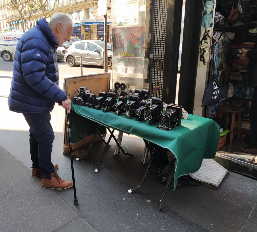 Later we passed one of those newspaper kiosks which oddly had a table full of old cameras for sale…we have enough already!