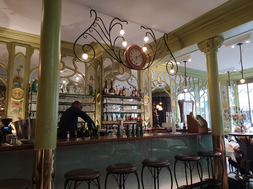 Then a stroll in the direction of rue Racine where I had booked our/my birthday lunch. Another internet find, it’s a bouillon, an old name for a Paris bistro, as I understand it, and this one still retains its beautiful art deco style.