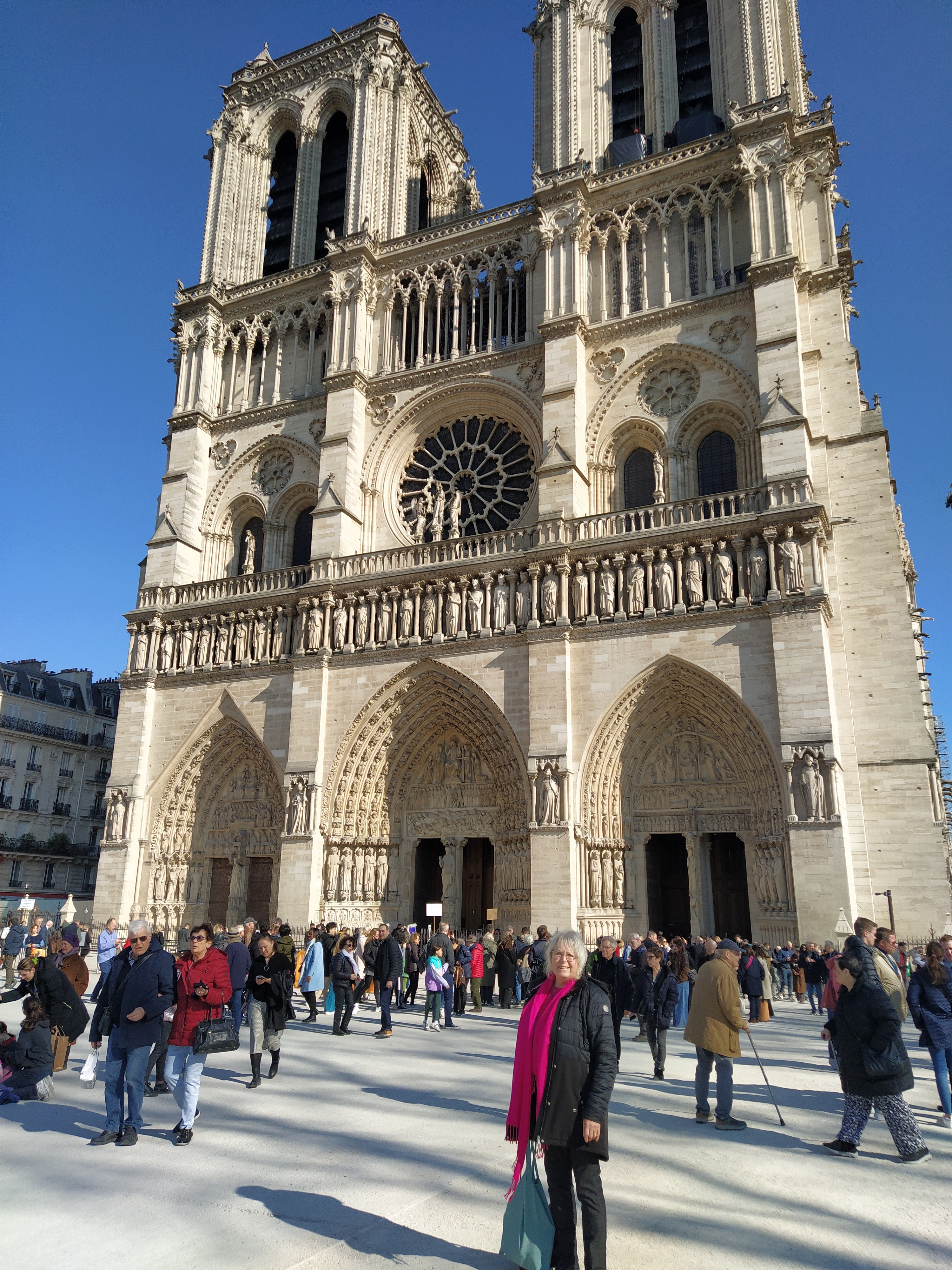 Outside I tried to get himself to take a picture of me in front of the facade. I usually moan if he loses my feet but this time I didn’t mind, I just wanted Notre Dame..but a corner got chopped off and I look grumpy! 😊 But I woz there.
