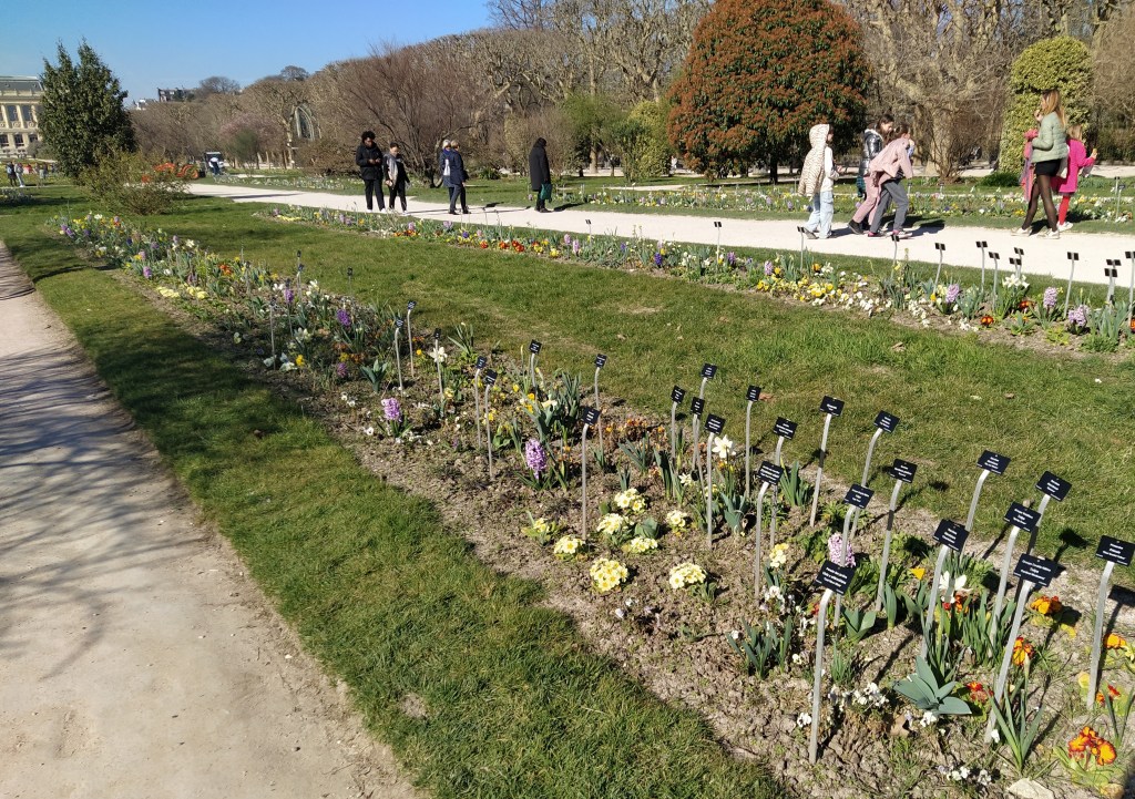 While we were there a starling ran up to us, clearly expecting some crumbs. We had nothing to share but it was a surprise to see one as we rarely get them at home. Feeling peckish we strolled back to the exit gates and crossed rue de Rivoli to find the bistrot I had booked online. It was a bit more upmarket than I had realised, all long aprons on the waiters and waitresses and starched tablecloths. But delicious food and friendly service.