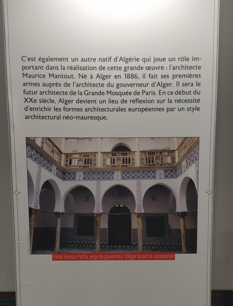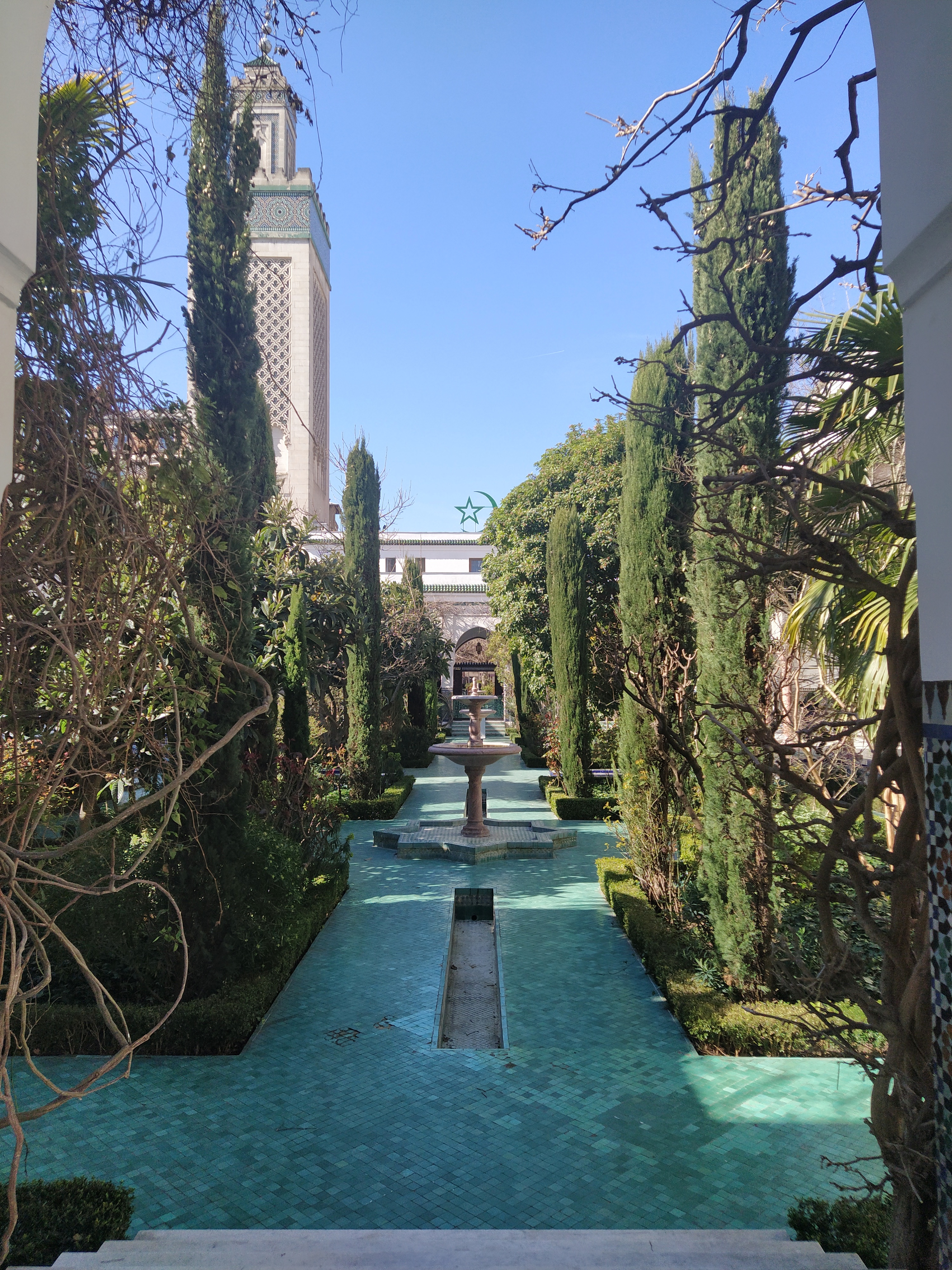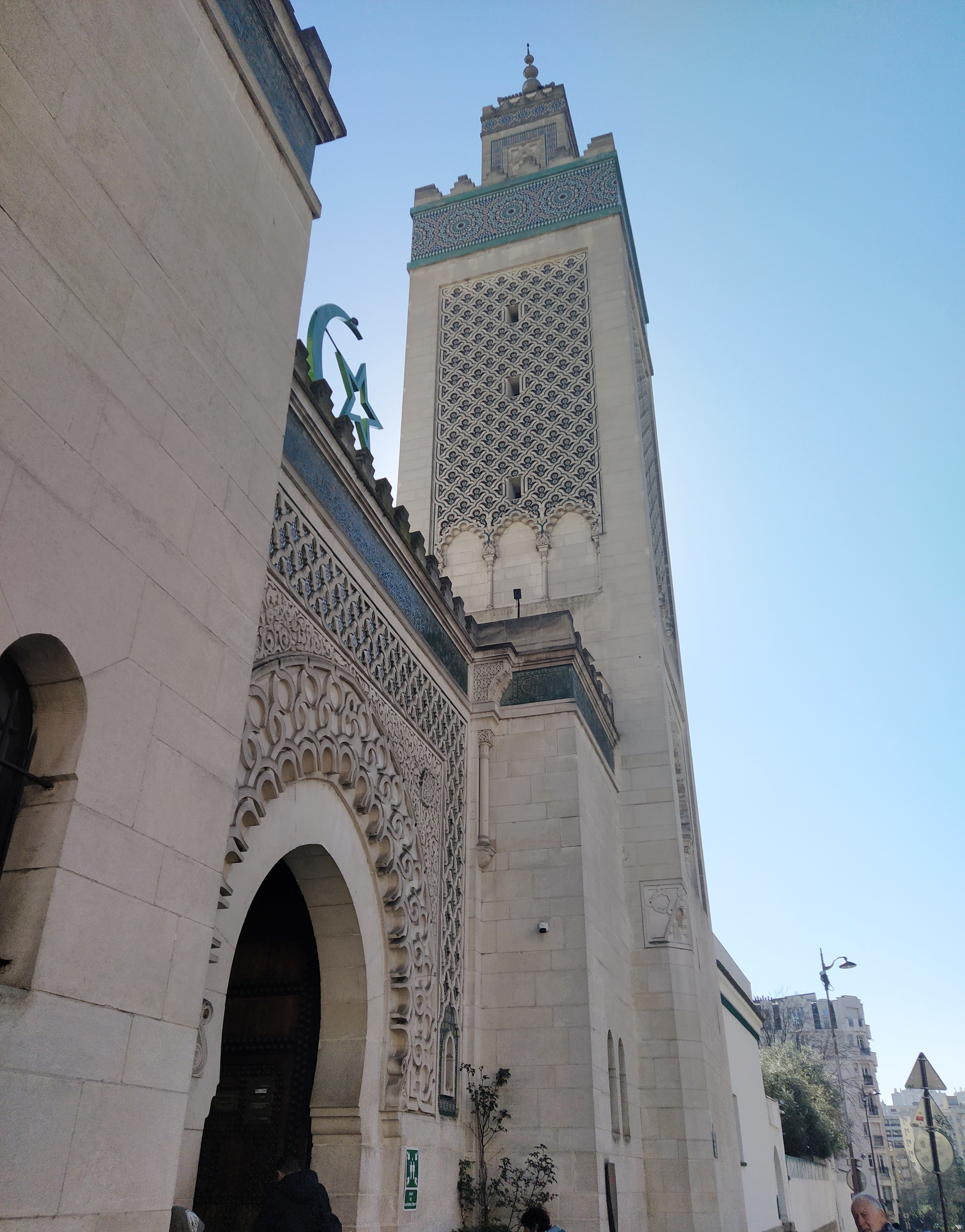 The reason for leaving the Jardin by this gate was because it was the nearest to the Grand Mosque of Paris. I had noticed it on Google maps and upon investigating, as I do, it seemed an interesting place to visit. It wasn’t far to walk, thank goodness. The activity of the last few days was catching up with us both.