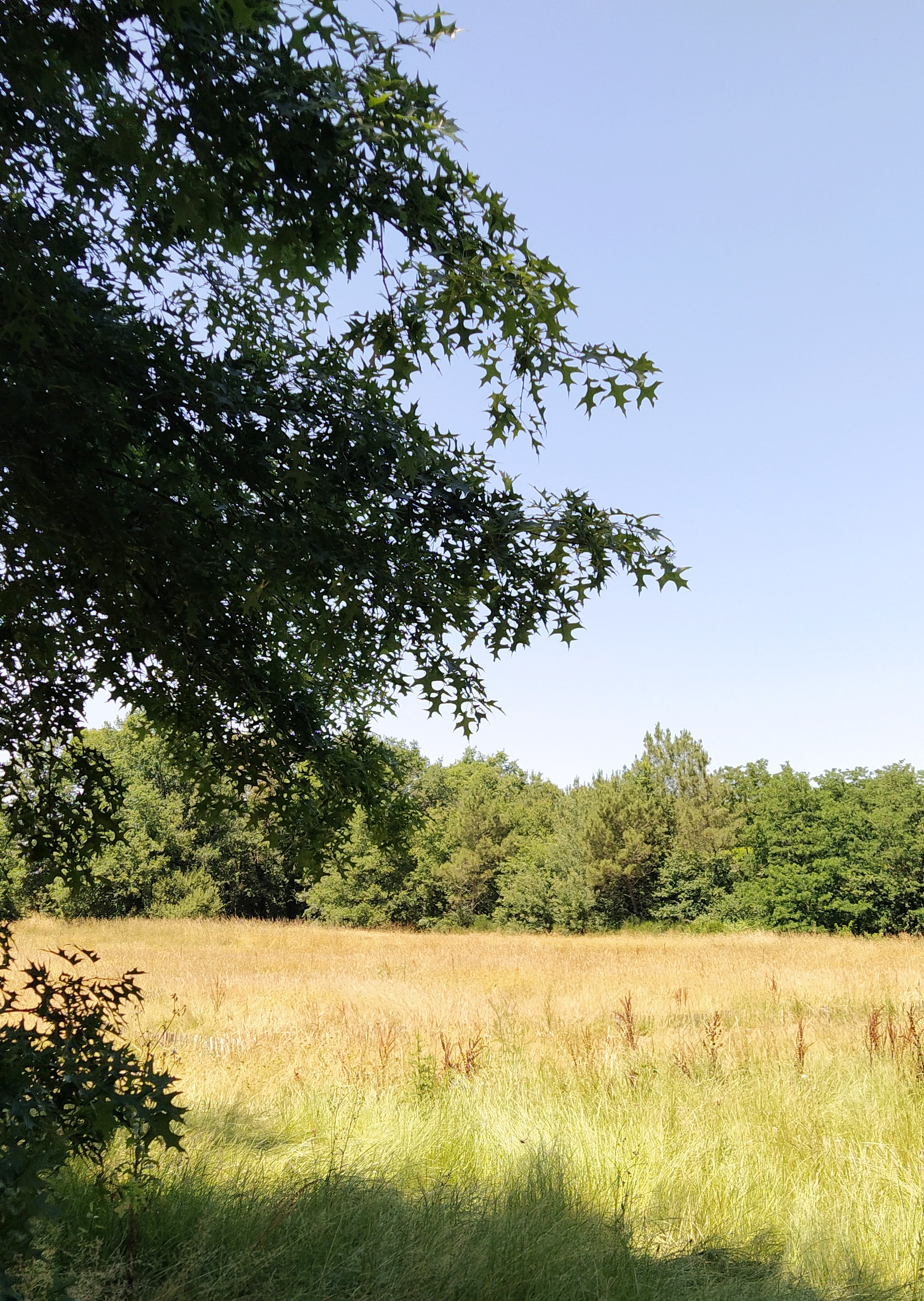 After that excitement the rest of the journey was straightforward. Very hot so aircon and windows open at times…I know, it’s either one or the other. Coffee stop close to Brive on the A89, lunch sarnies at aire des Palombieres somewhere west of Perigueux where I sat in the shade of a very leafy pin oak. Bet it will be beautiful in the autumn…