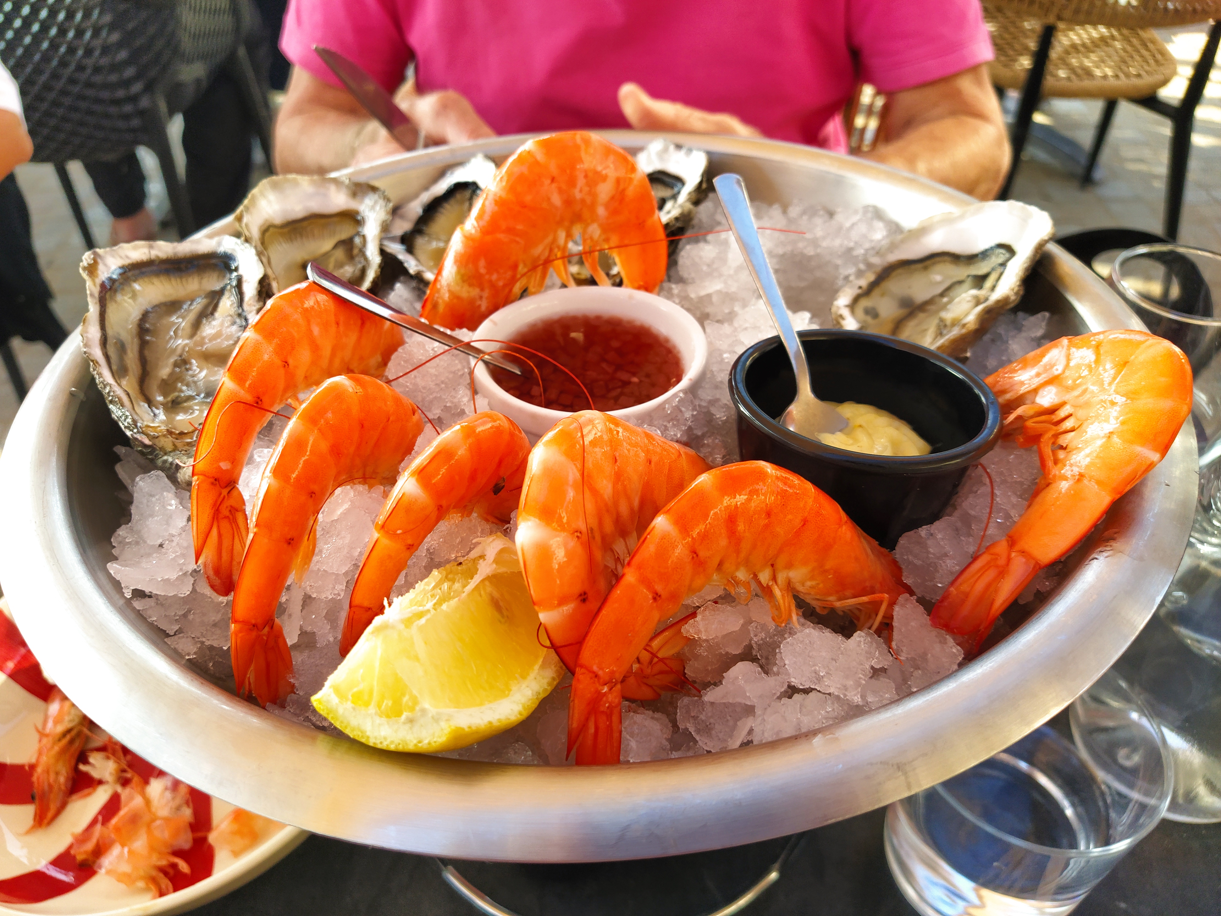 Himself finally got his oysters while I had prawns..very messy but delicious.