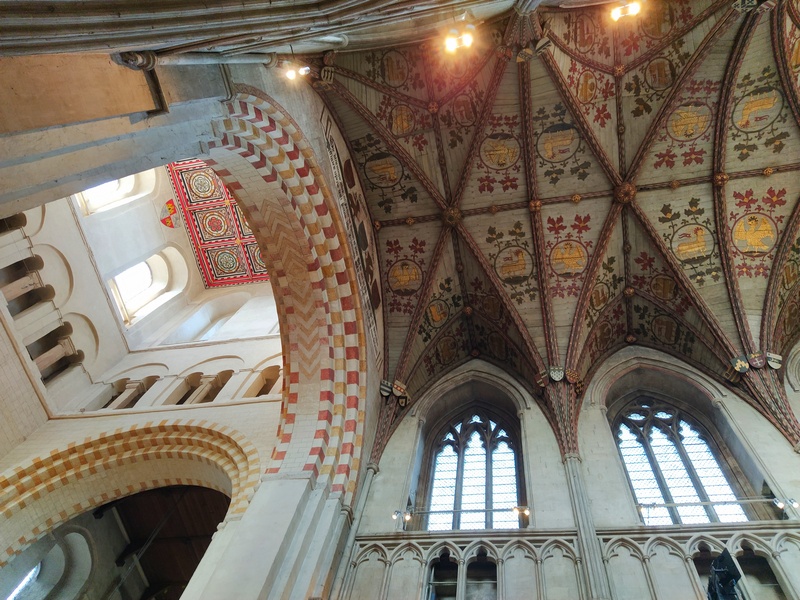 Buying two books about the church and the cathedral for reading later we walked back to the choir to investigate the stained glass windows, a mixture of glass across several different centuries. Thankfully, the oldest pieces had been stored safely during world war two.