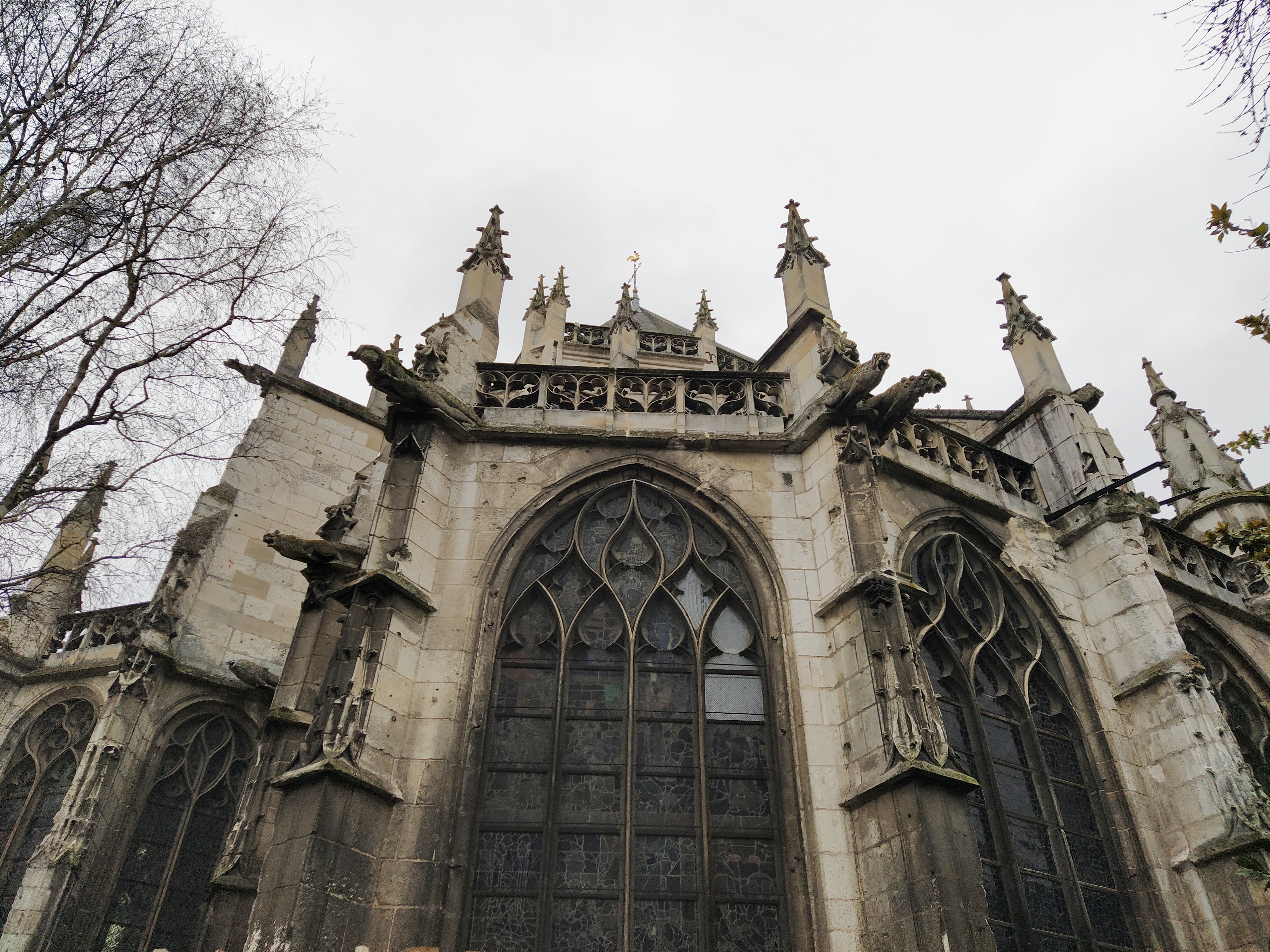 The end of the line was by the Hotel de Ville and we’d passed a huge church just before. The wind was cold but hands in pockets and collars up we walked back around the block to find the church entrance.