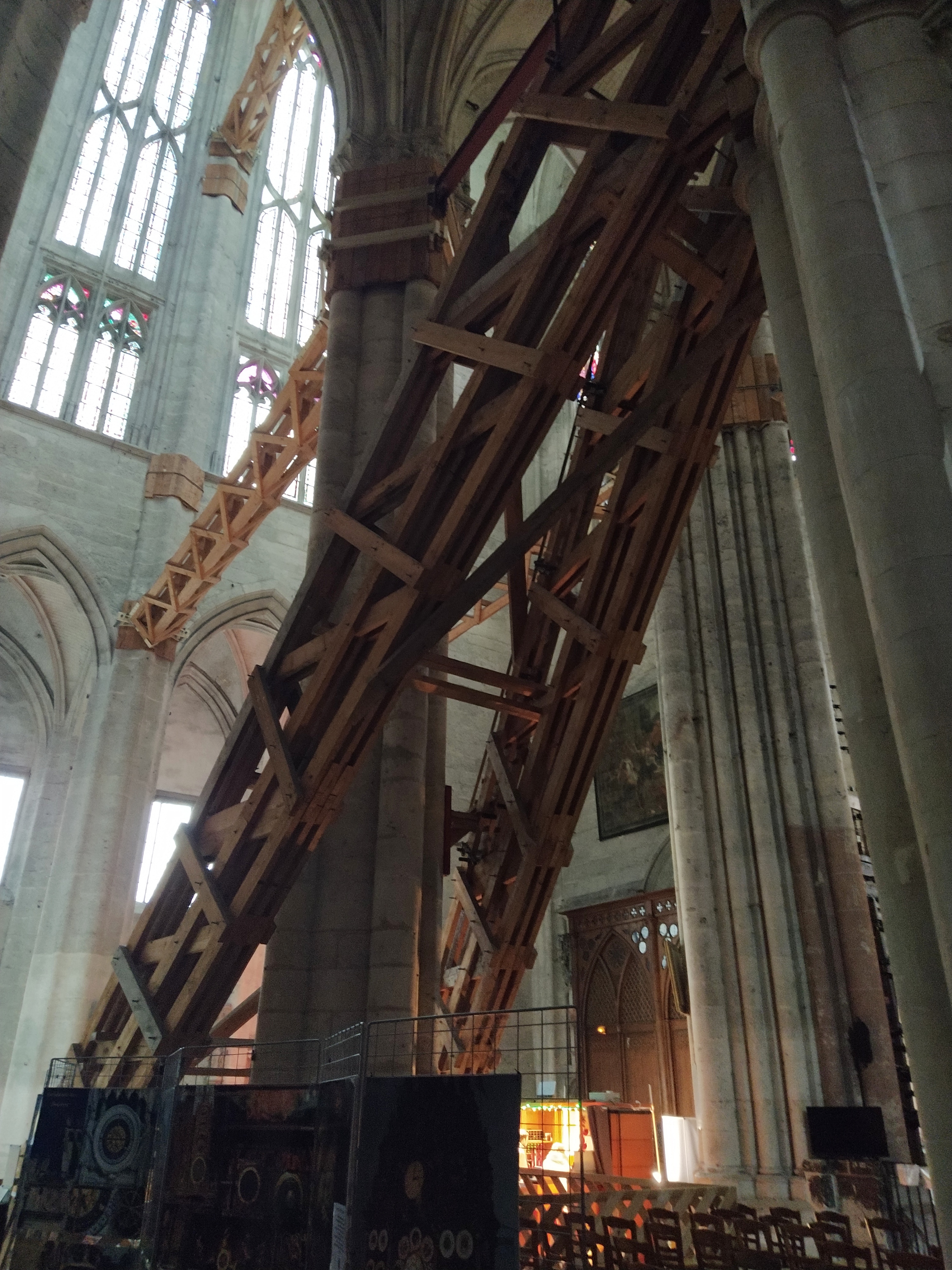It was quite dizzying leaning back to take it all in. Huge sheeting shielded the view of the ongoing restoration but we able to pick our way around to a side chapel where our breath was taken away again by the size of a wooden buttress holding up the stones around us!