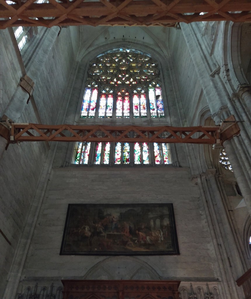 We found the cathedral of Saint-Pierre a couple of streets away surrounded by hoardings and lots of works vans. It has an impressive entrance up many steps but then you walk between wooden boarding to gain access to the choir. The immediate impression is one of breathtaking height. I read later that it is the highest gothic choir in the world at 48.5 metres!
