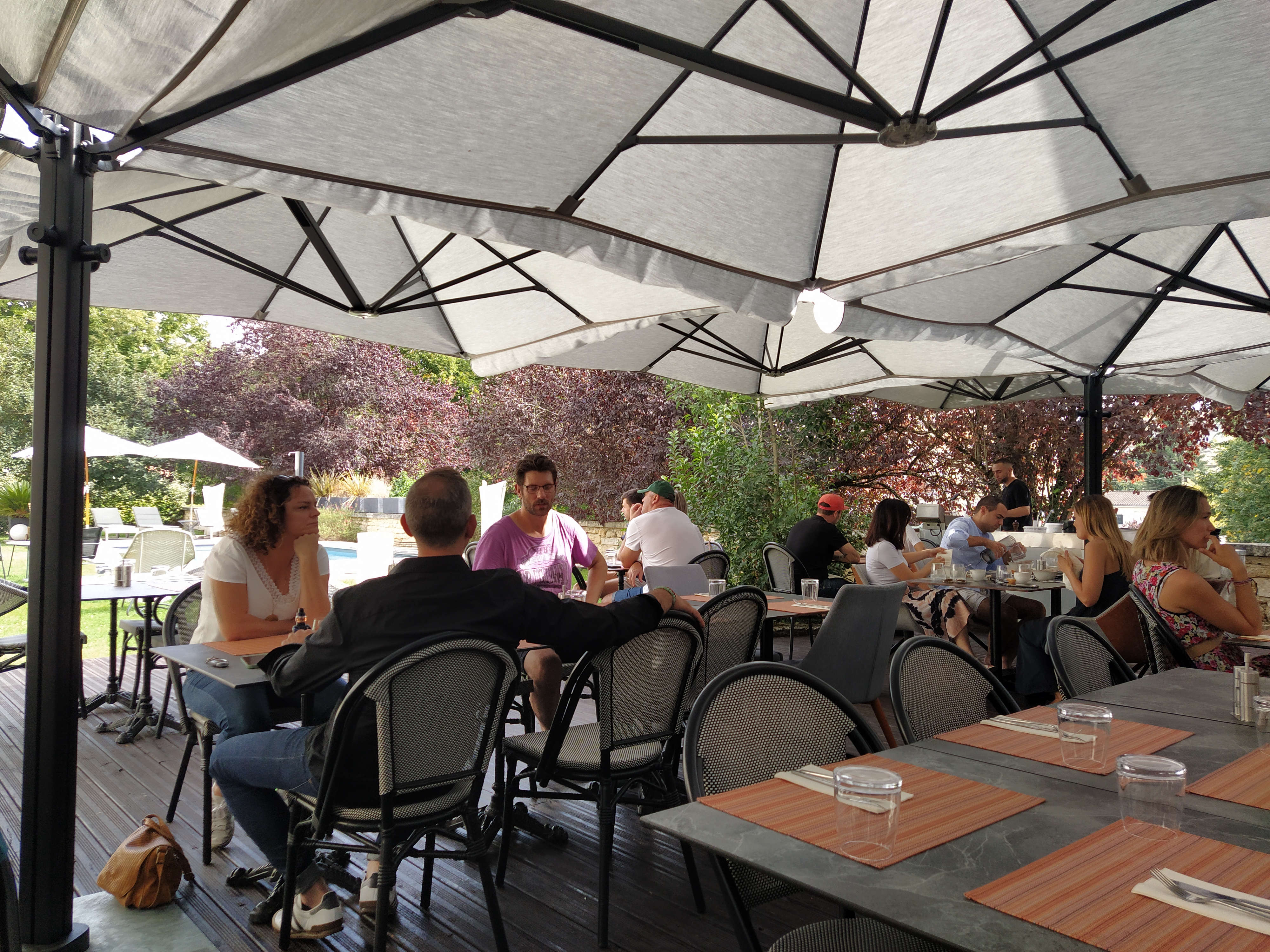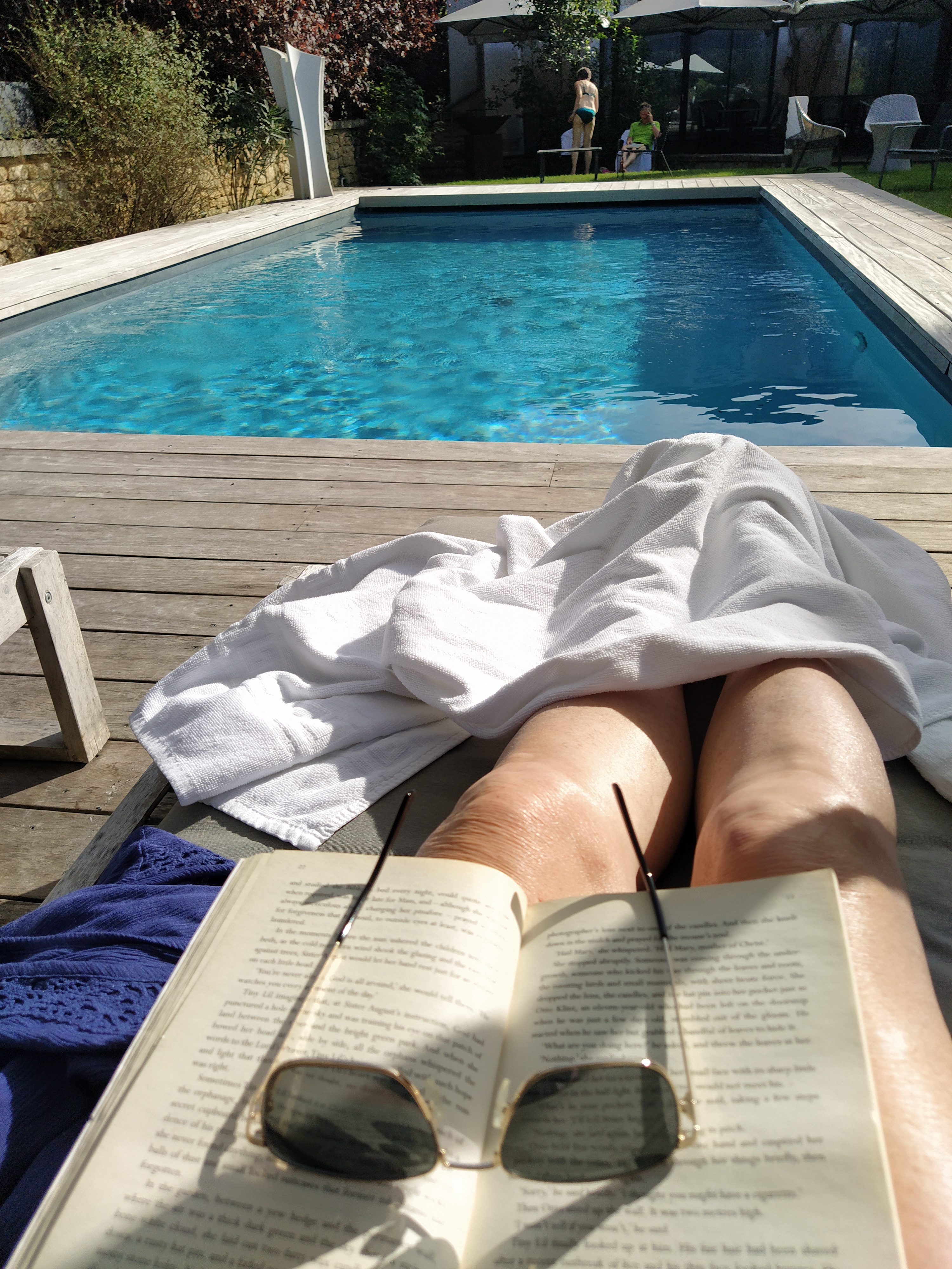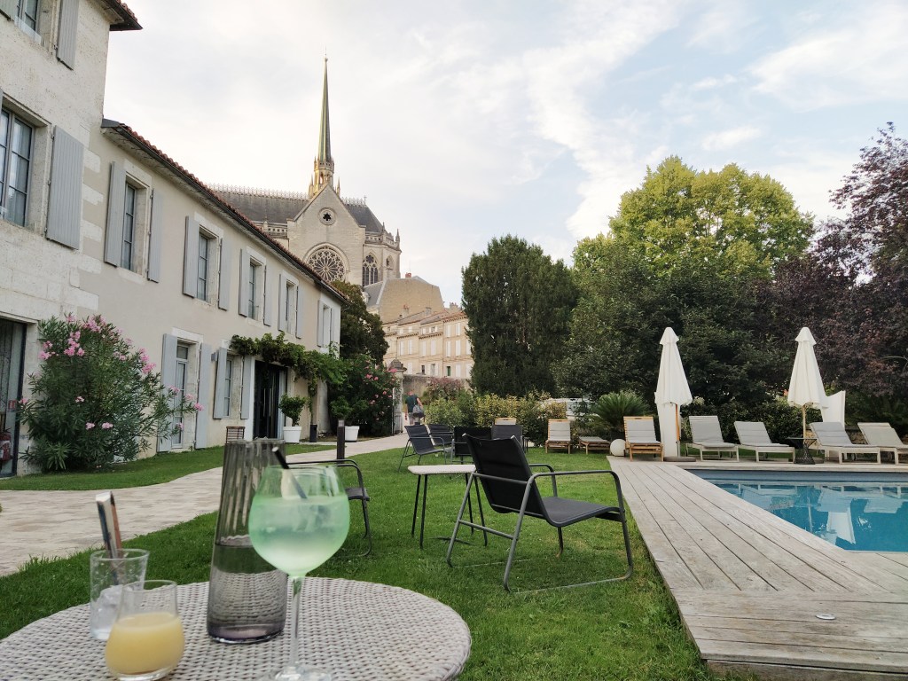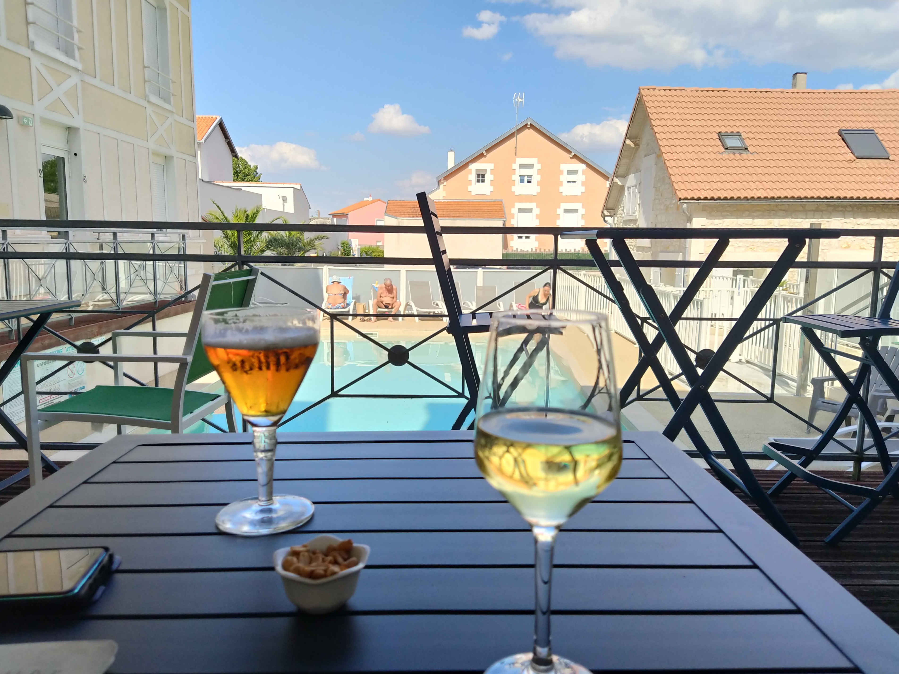 It wasn’t long before we had settled ourselves in, had a recovery doze and then taken ourselves down to the rear terrace, overlooking the pool, to enjoy our arrival aperos. As we relaxed in our new surroundings we sensed this was going to be ok.