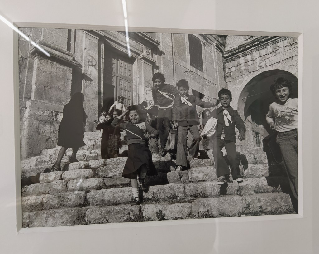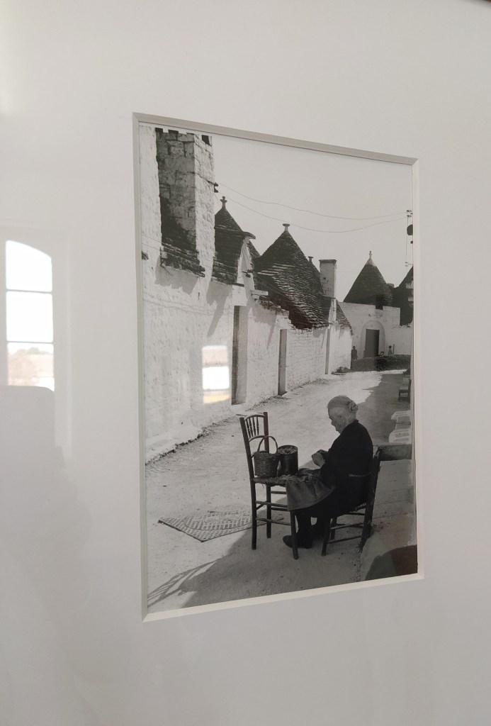 The wheelchair came out as it looked like the distances were a bit too much for just the cannes but Lou managed to get himself around the two floors of the gallery. The lift was freely accessible, thank goodness. I was disappointed that there was only one photographer, Lisetta Carmi, featured in the centre but a very good one all the same. Lots of black and white photos of everyday life in Italy in the 1970s. I was excited to see Alberobello in Puglia which we had visited in 2012.