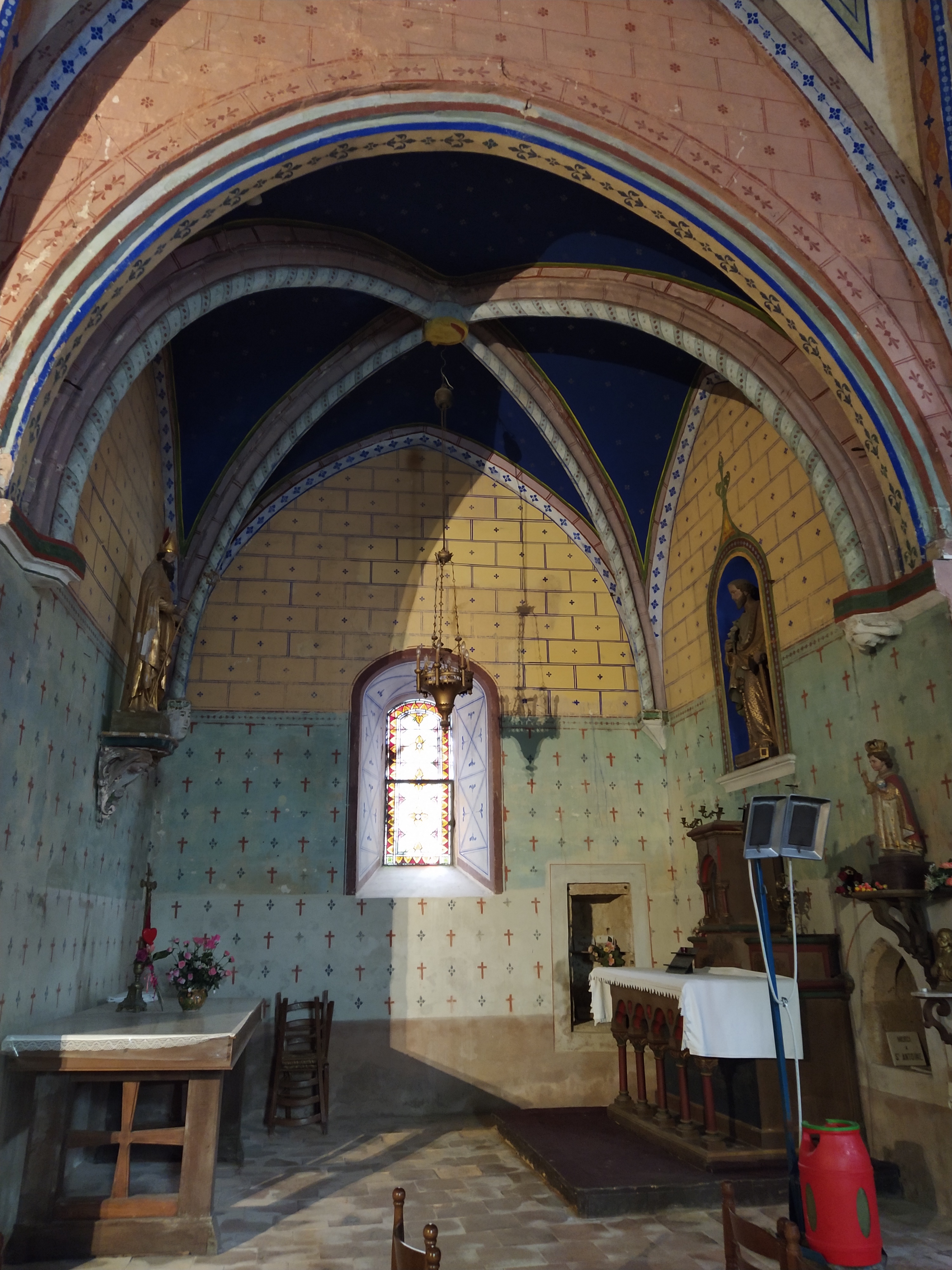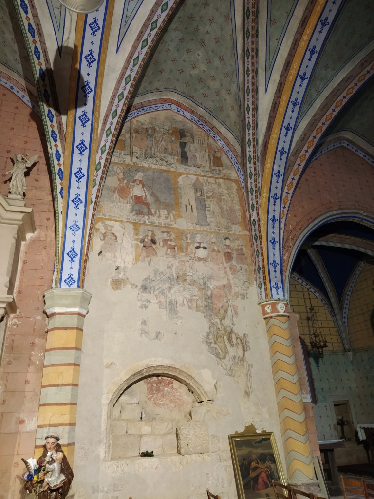 I discovered that Saint-Antoine is a recognised stop on one of the three Compostela routes across France, this one being the Via Podensis starting at Le Puy. The church is celebrated for its painted interior and for a recently discovered medieval fresco which is still in the process of being restored. I was hooked!