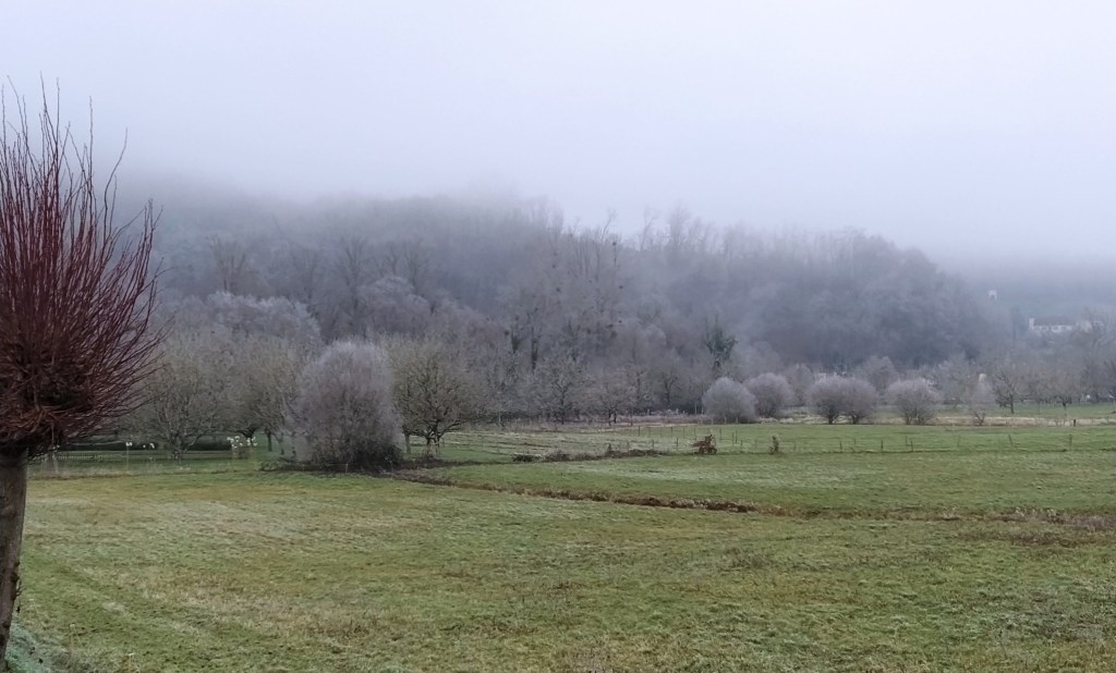 When we were just starting to let our little holiday house as a gite we were asked to house some holidaying friends of friends who had been flooded out lower down in the village. They stayed for a week and left a delightful message of thanks in our new ‘livre d’or’/visitors book, hoping we would go strutting, proudly as peacocks, into the future. Recently, strutting is not something himself can manage and I feel less inclined to do so either! But we have managed to stumble into 2024, spending ‘Reveillon’, New Year’s Eve, with French friends of friends which taxed my language skills but led to lots of laughs and corrections. It was a warm and touching way to finish a difficult year.