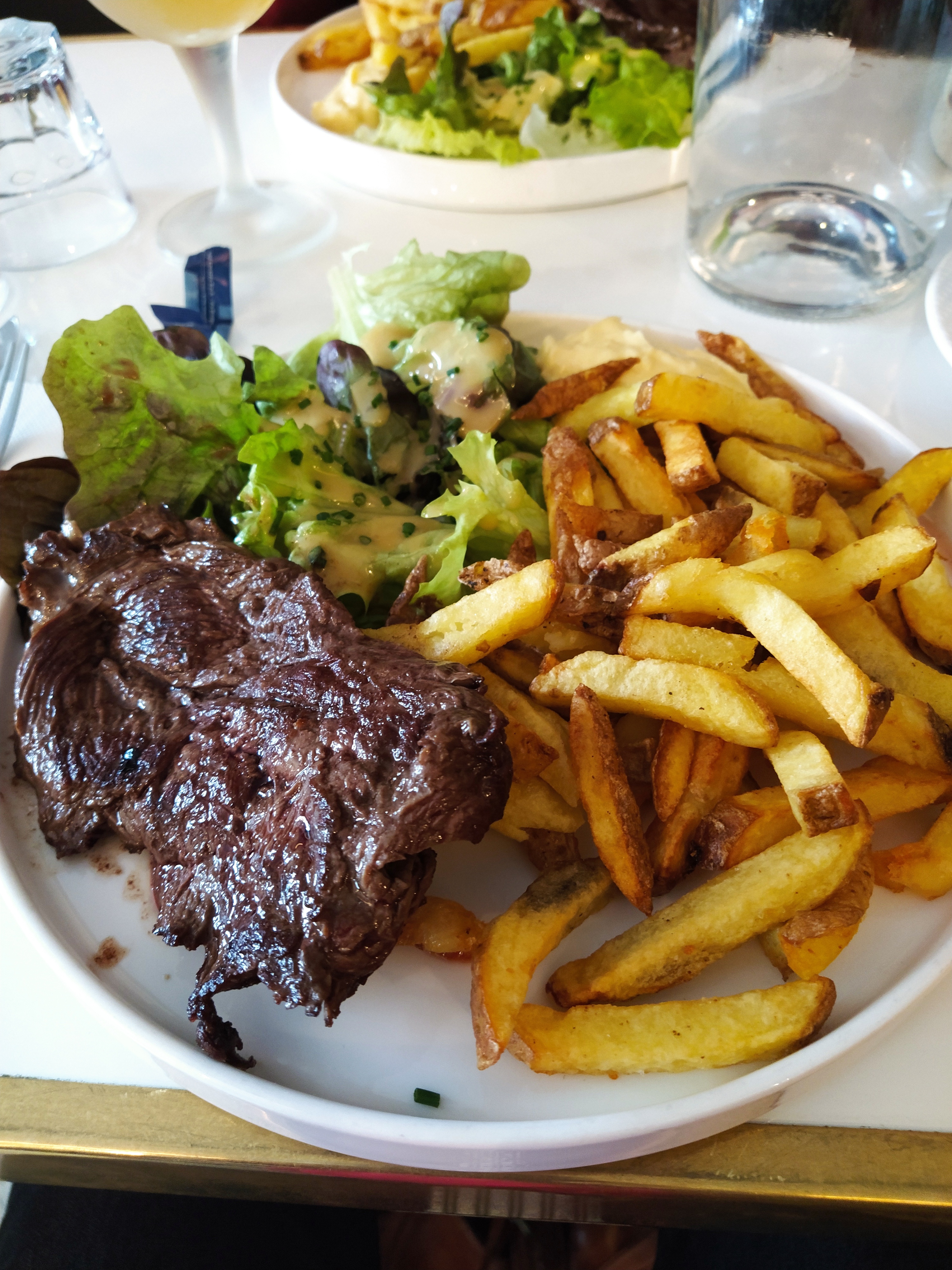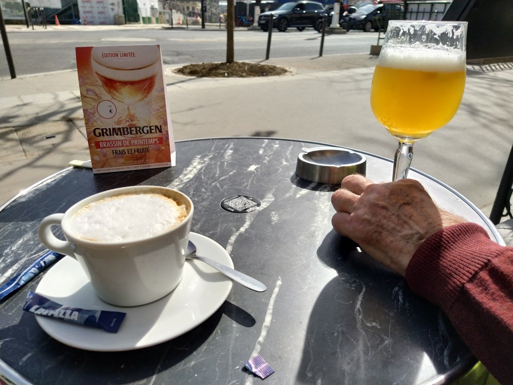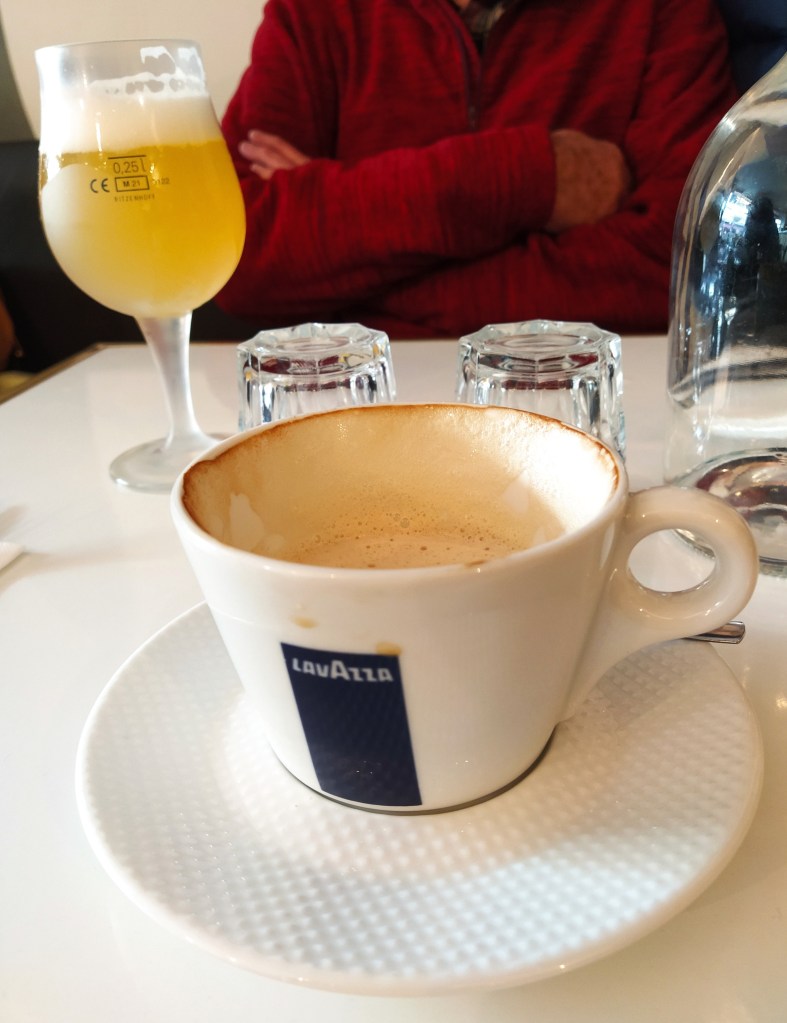 No need to cancel the bistrot reservation I had made the day before as we had arrived early this time around and I was glad I had booked as the place was busy. Cheerful staff and two excellent steak and chips after an arrival beer blanche for him and a grand creme for me.