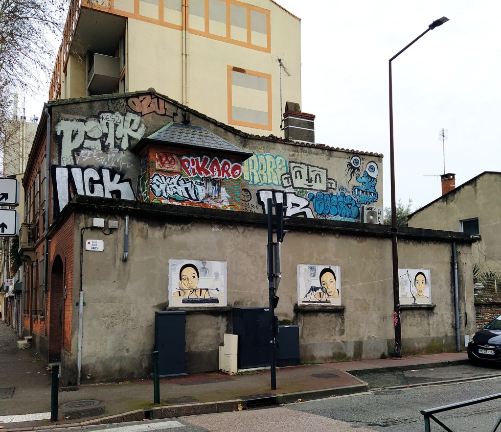 I am the designated driver now and hadn’t driven into Toulouse before but wasn’t too bothered by the prospect. The day we had chosen was dryish so the drive was fine but Toulouse, or rather its road layout, had changed dramatically since we had last visited. After driving down a bus lane and then doing a right turn that may have been illegal we found ourselves on the far bank of the river. Following my nose rather than the GPS that was equally lost, we got back to the vicinity of the Chateau d’eau gallery but all above ground parking was ‘interdit’. Some choice ‘gros mots’ from me but, eventually, by carefully following signs to a car park we drove back across the river and parked under a ‘place’.