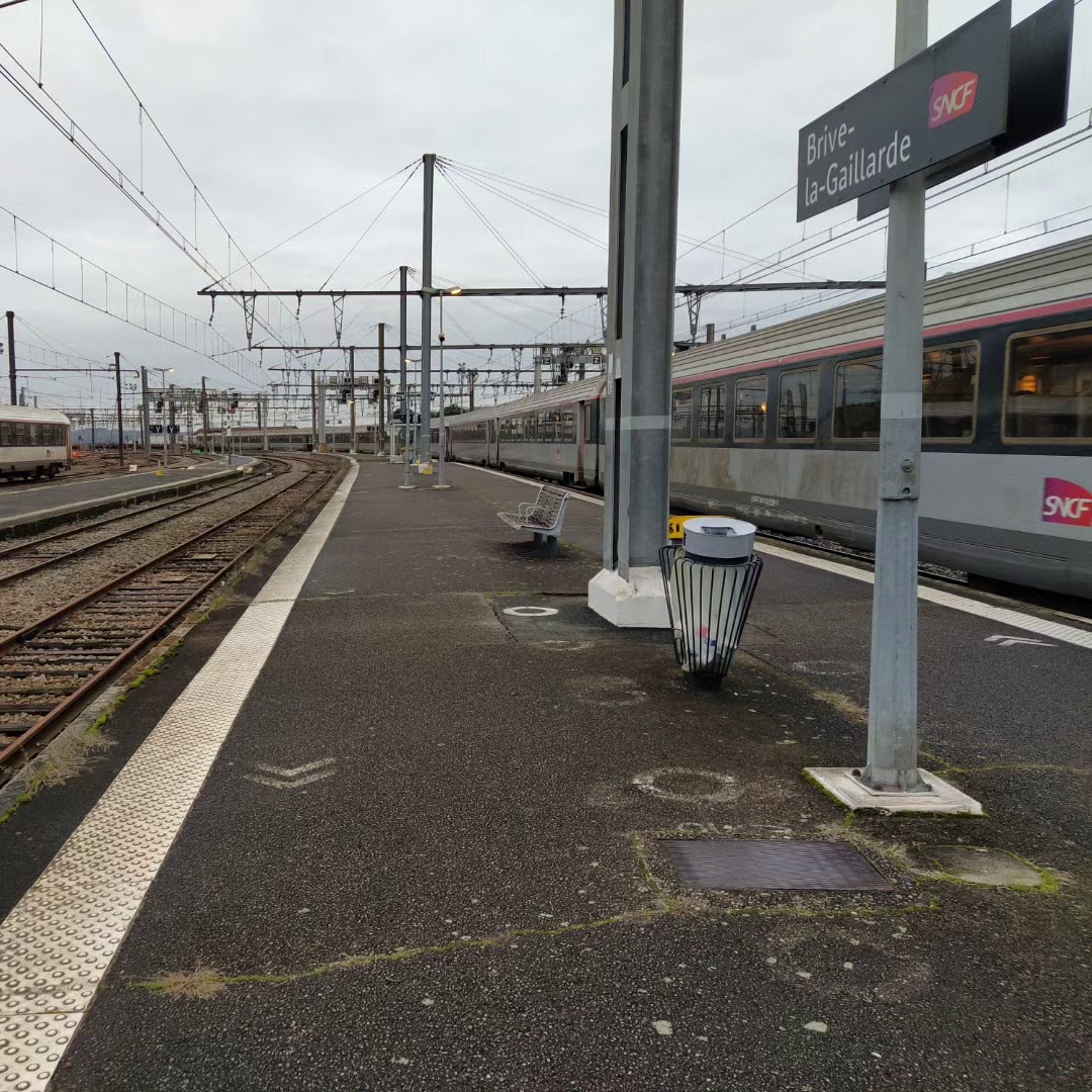 And sure enough he was. I thought this was brilliant. Our local train is one wagon only, it was filled by a mixture of passengers, the young girls paying no attention to the weather when choosing what to wear! 😊 and a few elderlies with suitcases and backpacks. At Brive a SNCF uniformed young woman met our older gentleman and we last saw them over on another platform as she waited and then helped into his connecting train and stowed his luggage for him. A paid service or just attentive and caring staff?