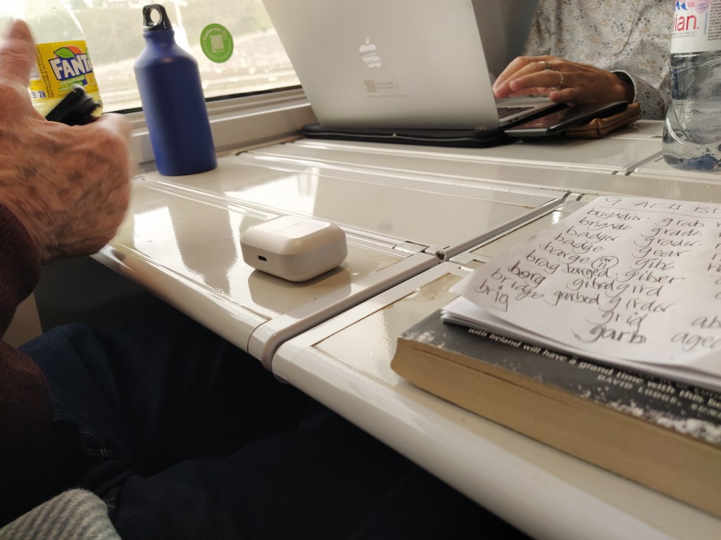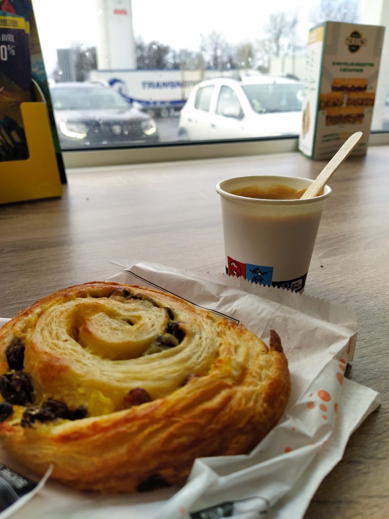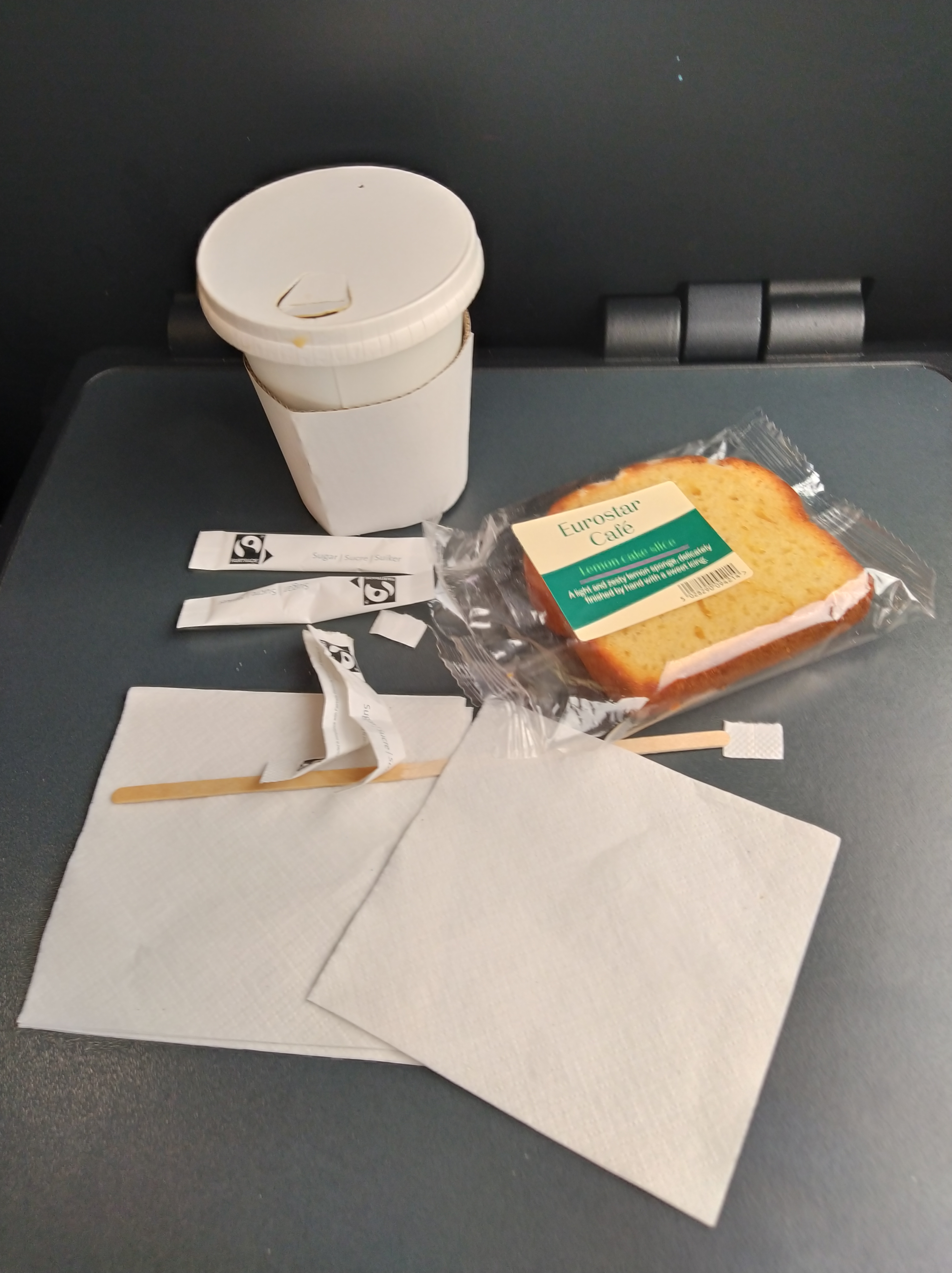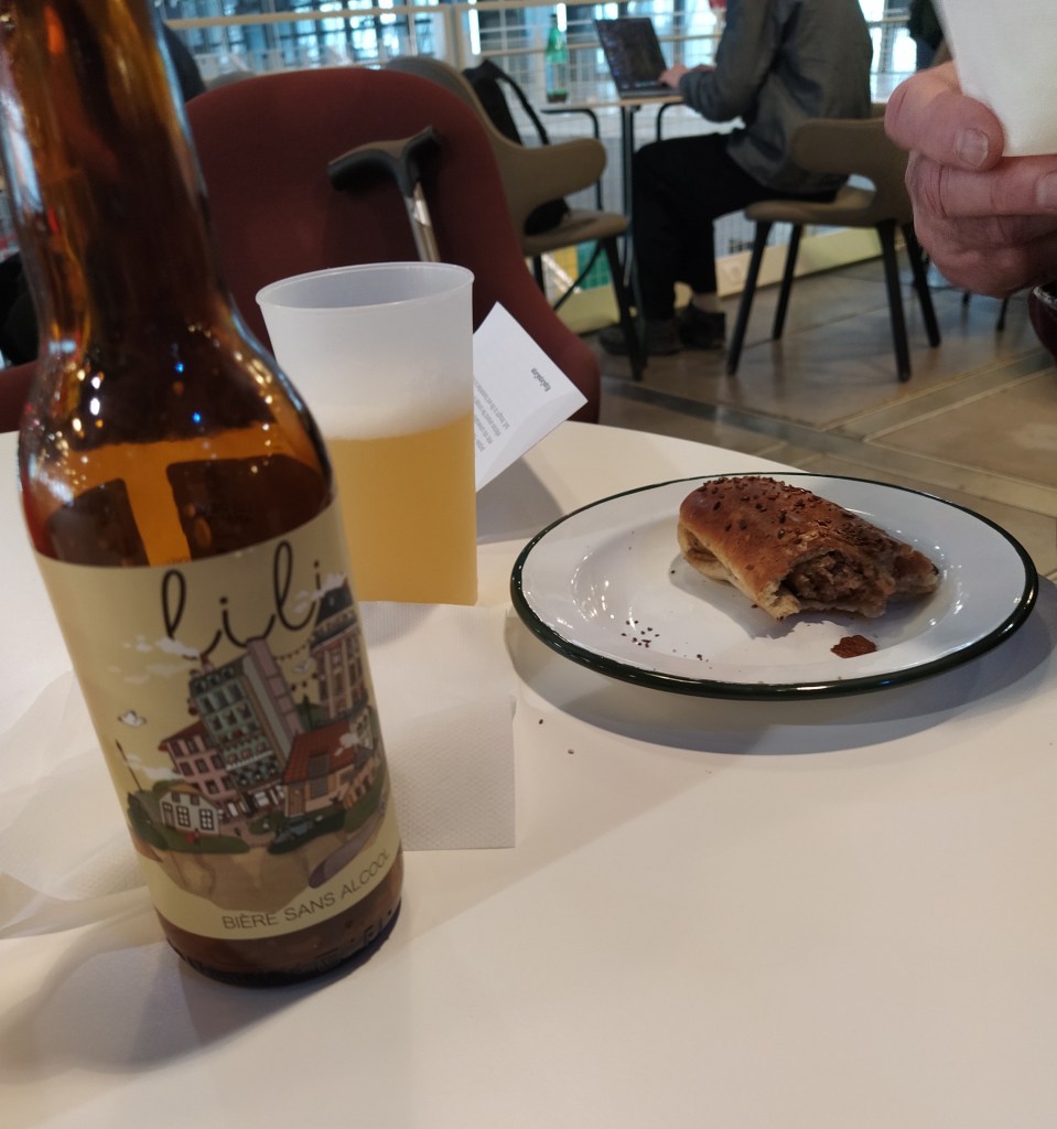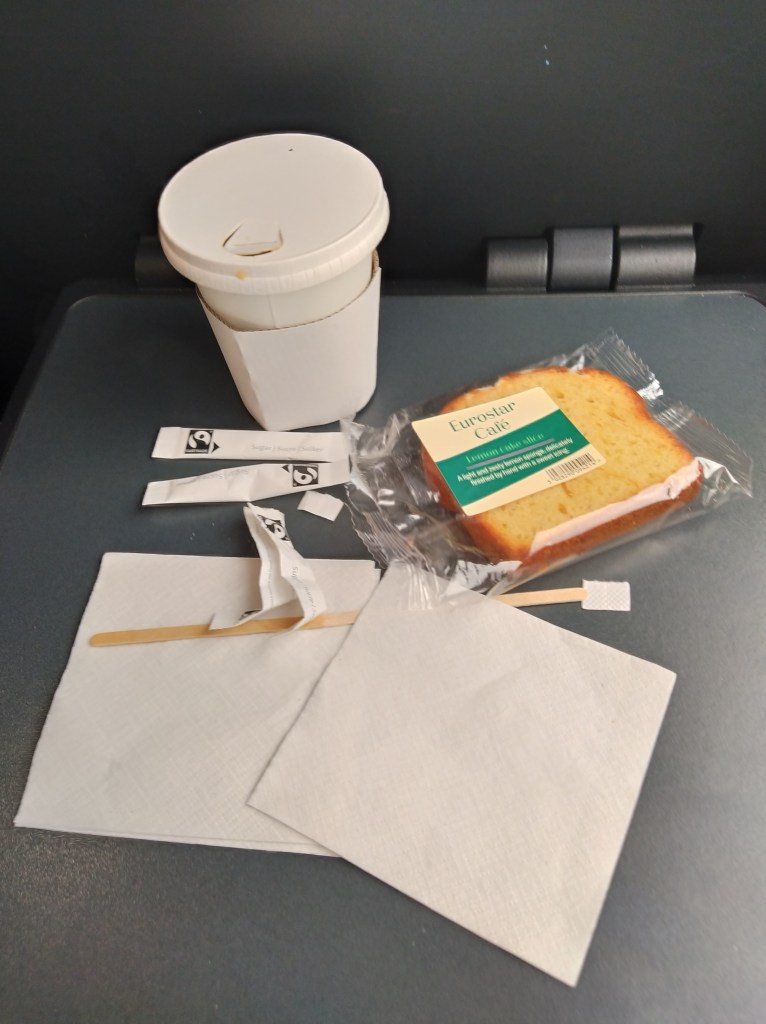 The train is smooth and fast and whizzed under the channel without any announcement, unless it was on the overhead running timer that I couldn’t see from my seat. I went and got coffees before then and something to eat to make up for the lack of breakfast.