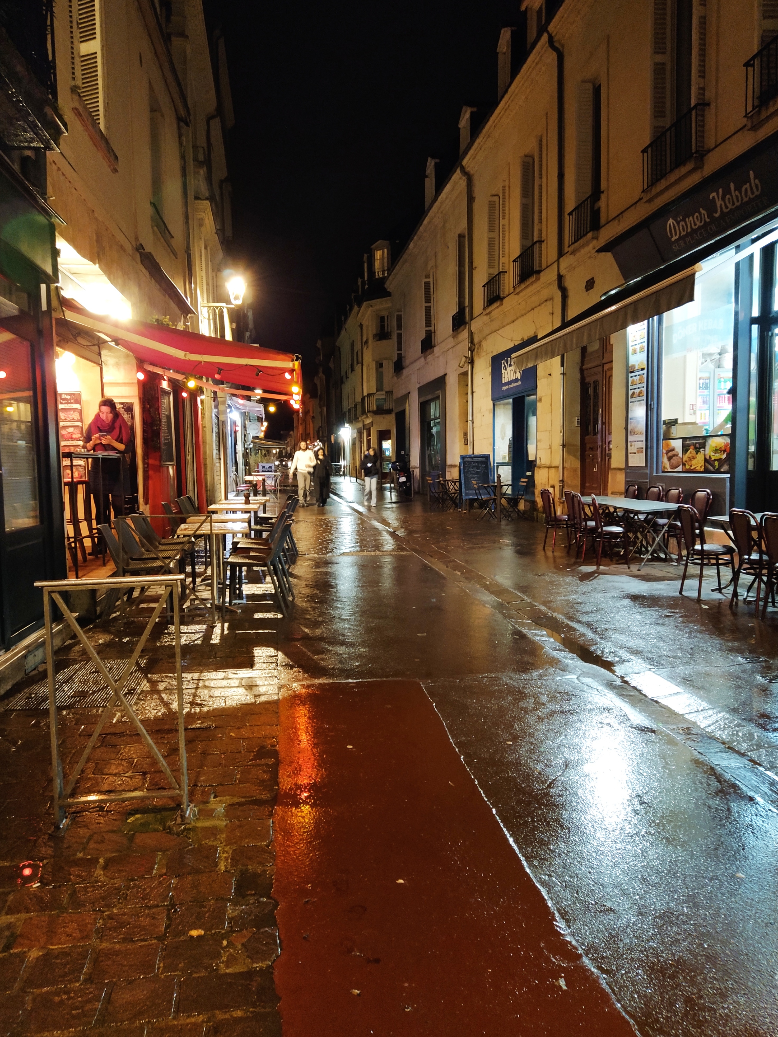 A delicious meal served by cheerful girls and the rain had stopped when we left. We walked back slowly taking in the array of menus on offer from around the world; Turkish, Lebanese, Vietnamese, Ethiopian, Indian…and French, bien sur.