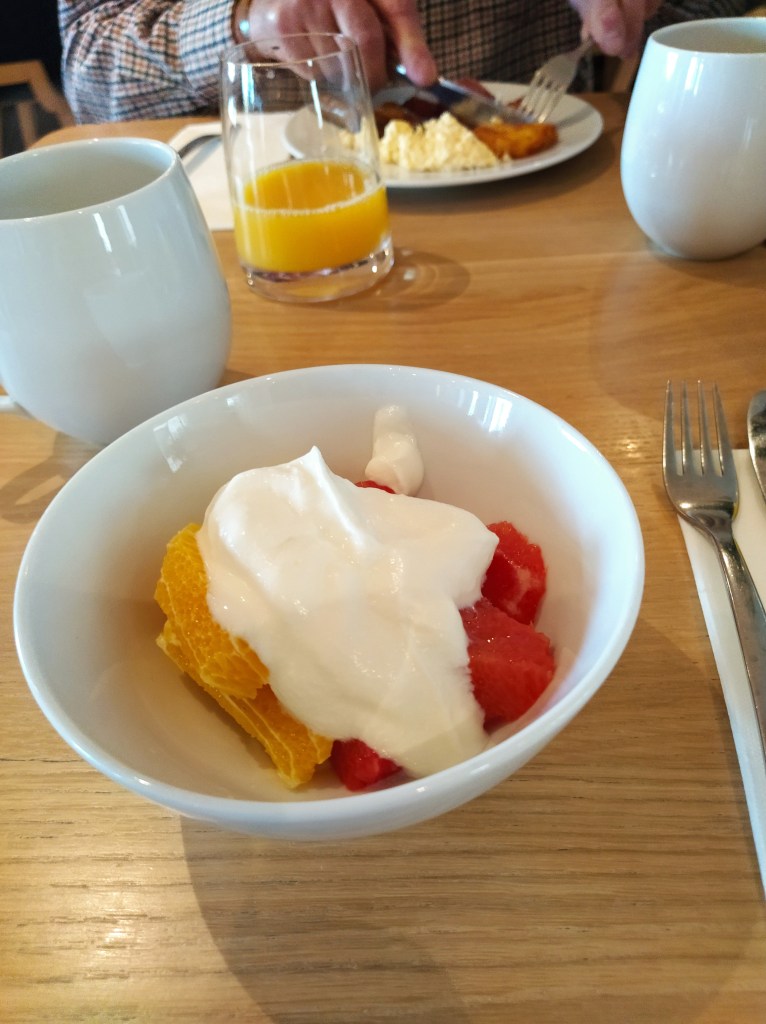 The GPS deposited us in front of the hotel around four in the afternoon. As informed in an email from the hotel there was off street parking which saved us the expense of the hotel car park. The welcome once inside was very warm and friendly and my email after booking asking for a room on a lower floor due to Mr McGregor’s mobility problems had been noted and acted upon so we were on the first floor. Thankfully, as there was no lift!