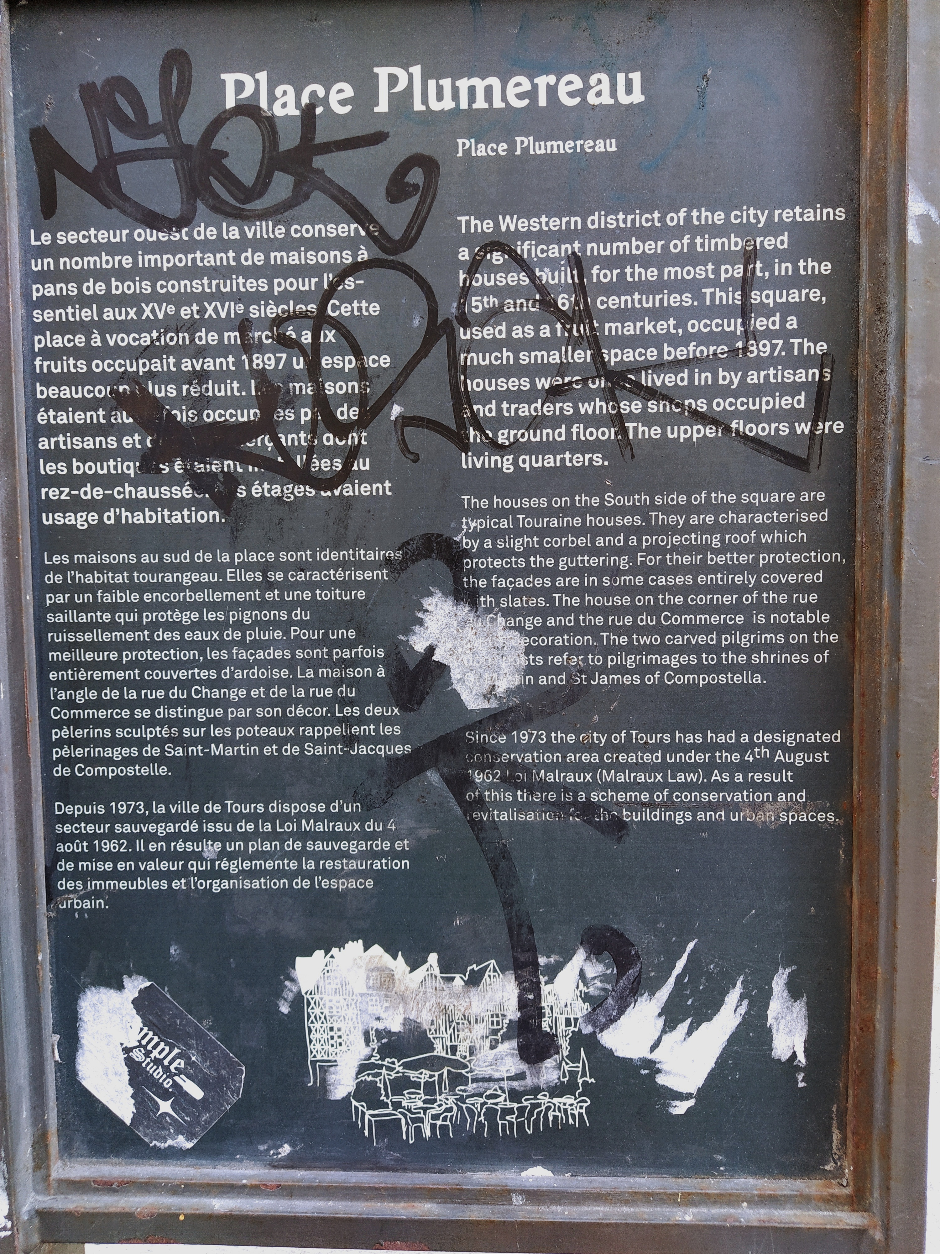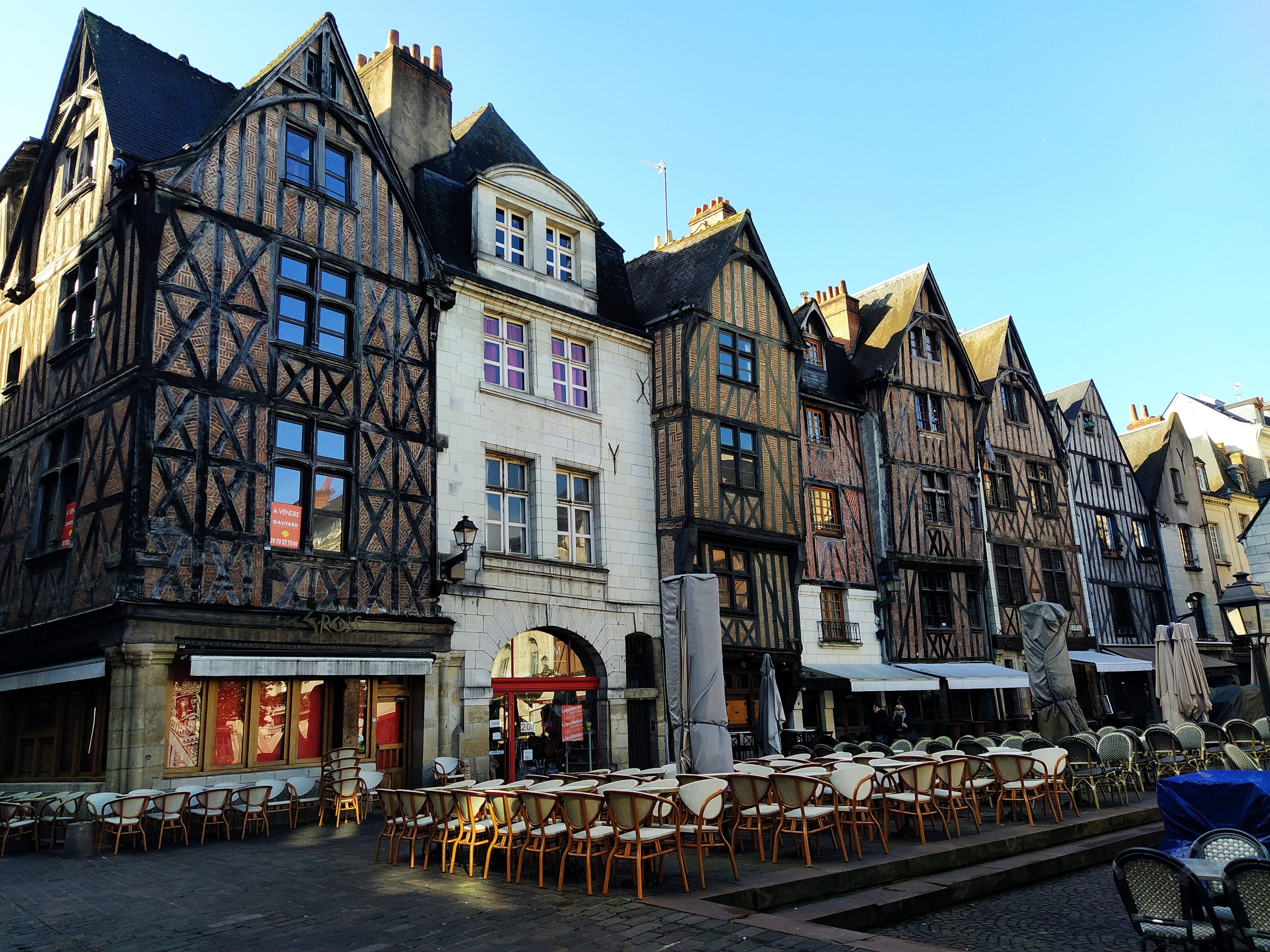 Planning ahead, I had photocopied a town plan from our Michelin France map book having remembered town maps were included in the back of our copy. It was only a few minutes walk to the place Plumereau, a beautiful square probably best avoided in high season but relatively quiet as there were few tourists about and just restaurant staff putting out chairs etc.