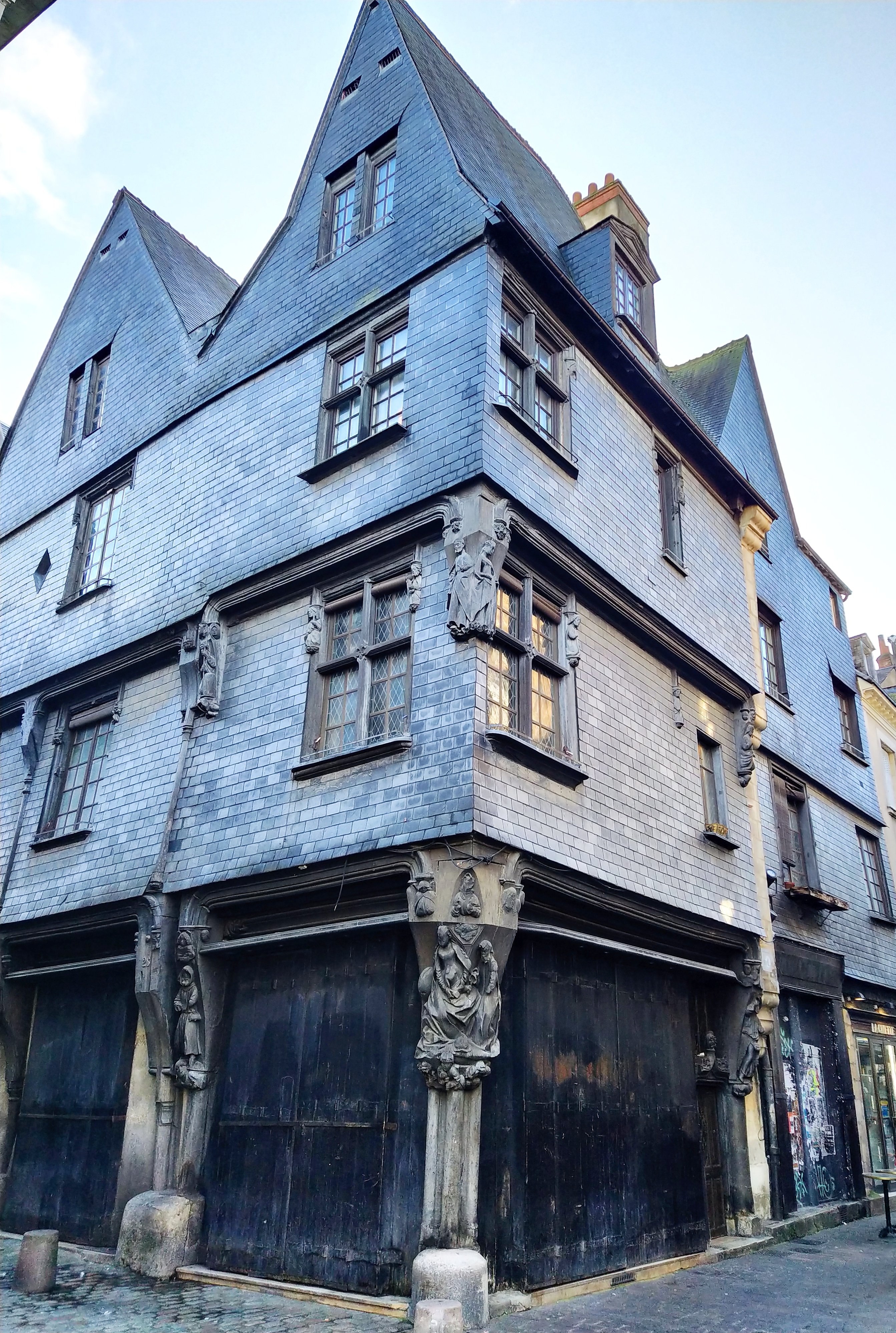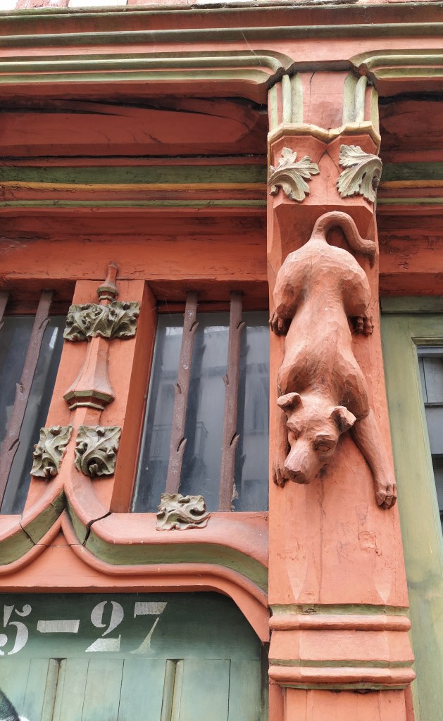 Apparently, we had walked past the house reputed to belong to the ‘armurier’ who provided the battle armour for Jeanne d’Arc in 1492. There is a sign to that effect but way up on the first floor facade of the building. I missed it but found it on Google earth. 😊