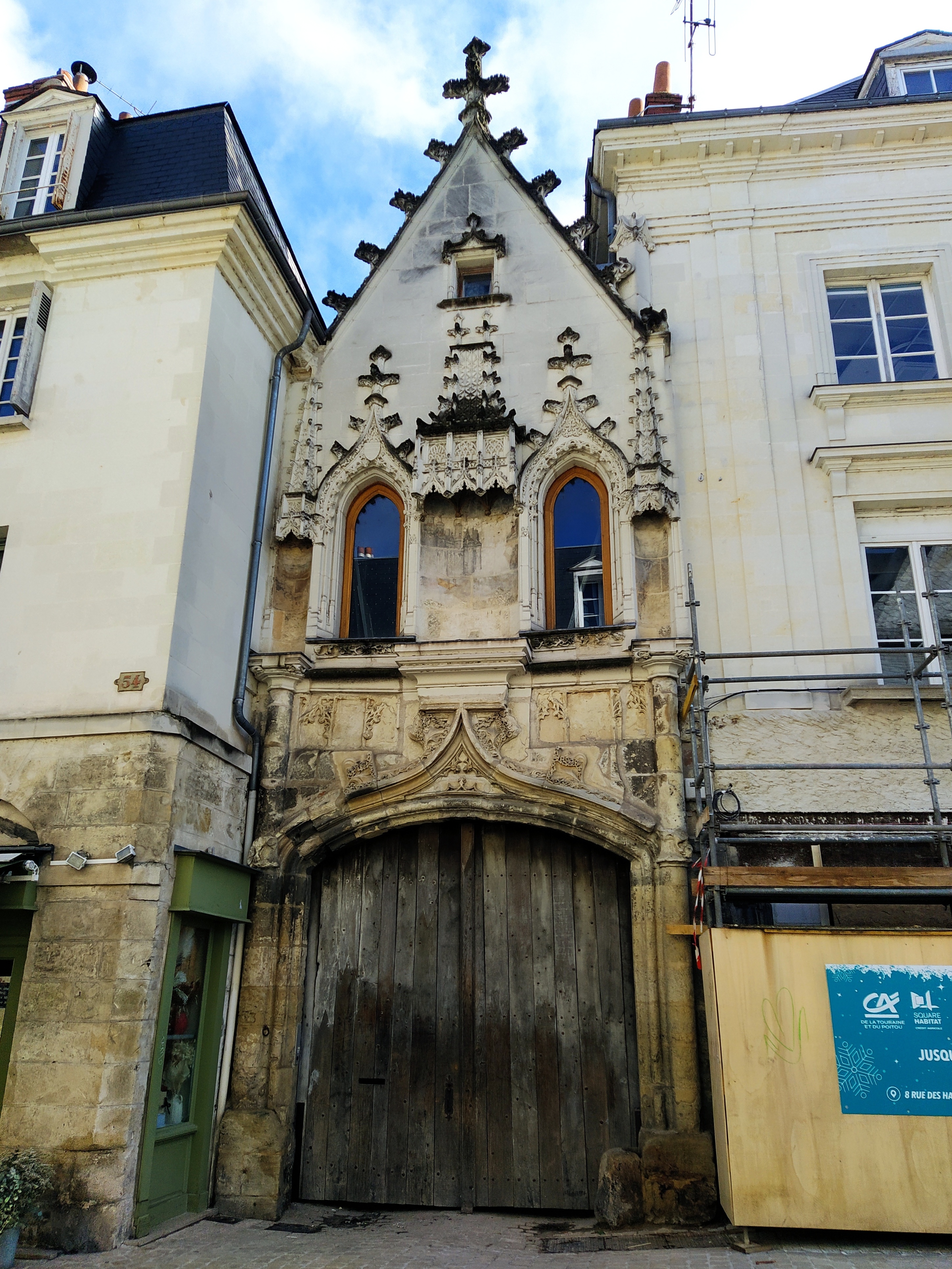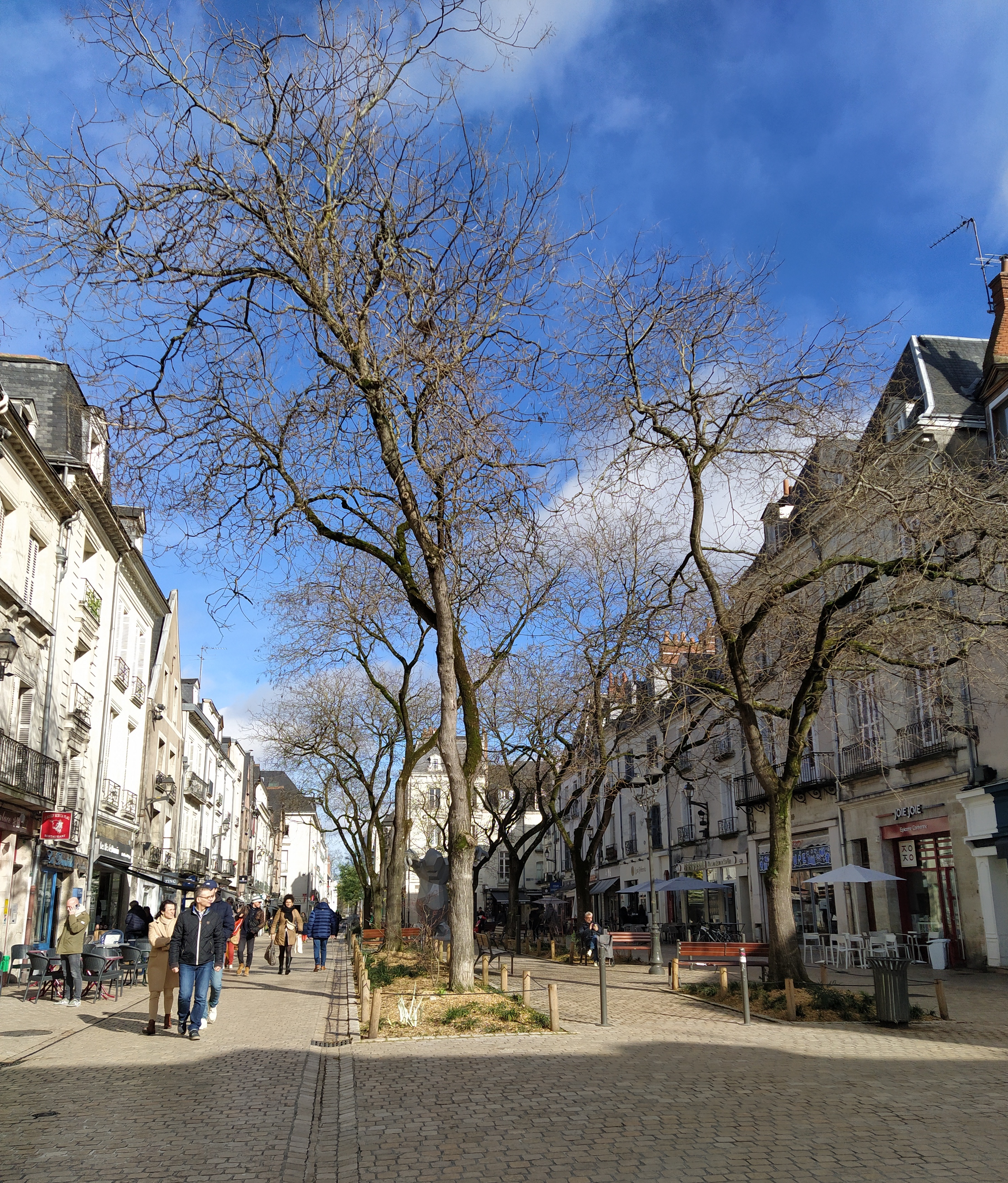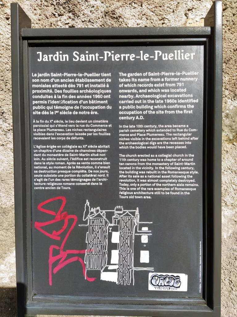We had passed some impressive stone churches and towers already and decided to walk back by a different route towards Place Plumereau hoping to find a sunny terrace for a coffee stop.