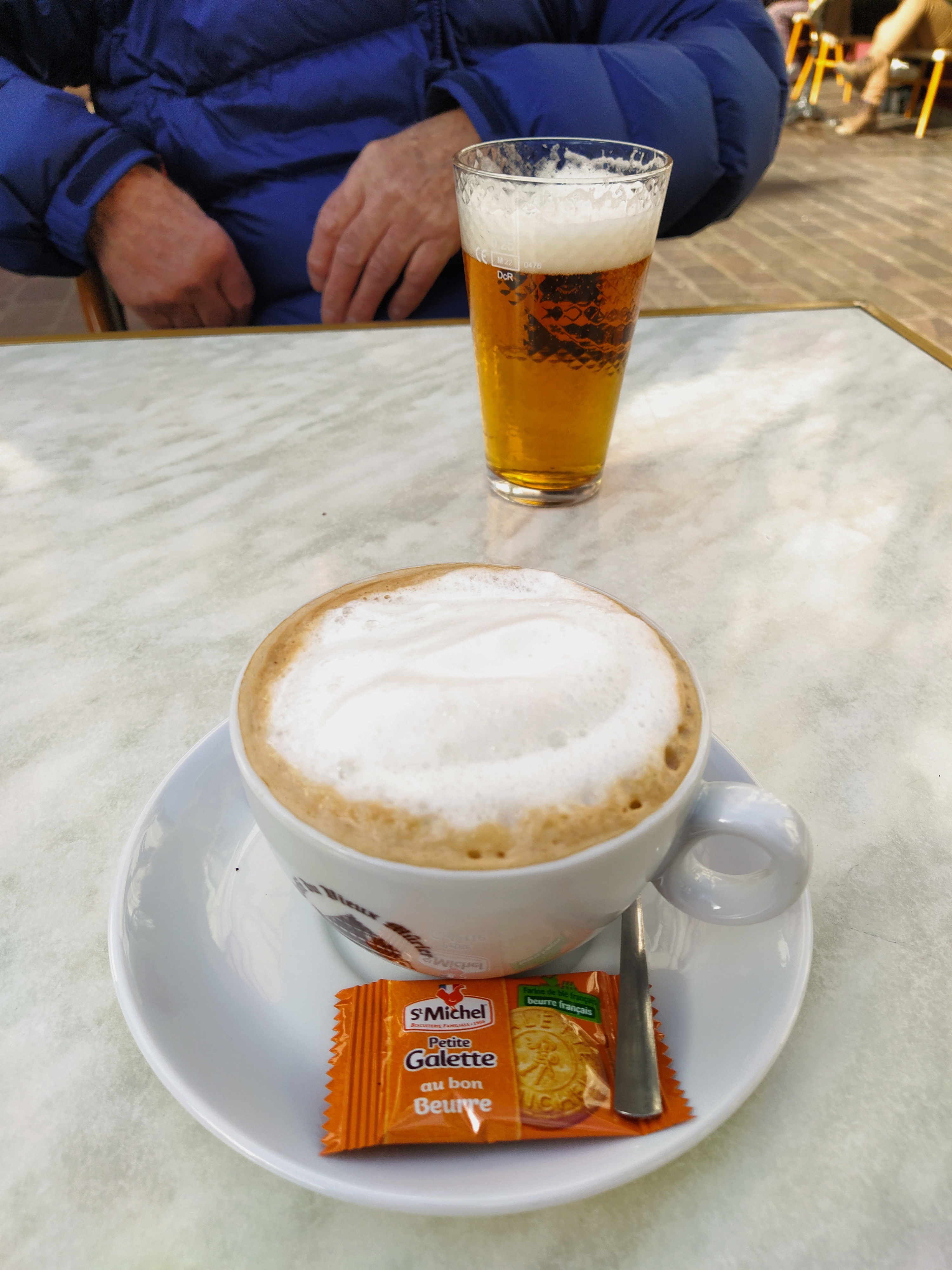 Back in the place the restaurants and cafes had opened and there were a few sunny spots so a birthday beer and a lovely facetime with the petit fils singing Happy Birthday to his Dada while I drank my cappuccino contentedly.