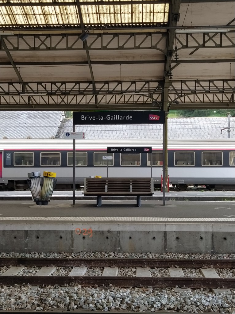 On board at last with the rain still falling I overheard the ticket inspector telling another elderly chap with a stick and large suitcase who got on when we did that he would be met at Brive by someone who would help.
