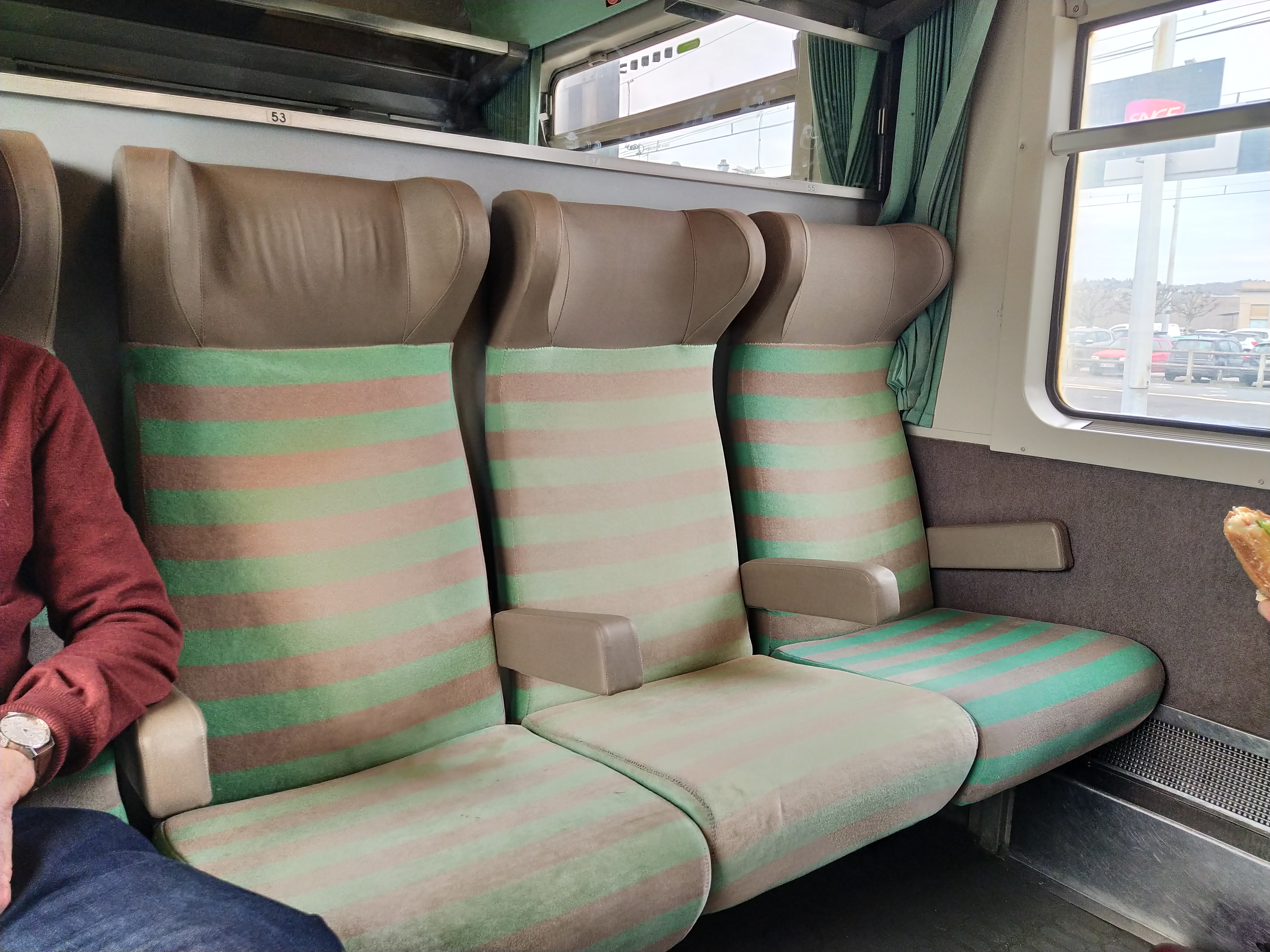 The emptied concourse slowed filled up with the passengers for our train but still we sat waiting for the order to board. Finally, with about twenty minutes to go, the gate was opened and we got ourselves organised and joined the throng. All very orderly as there was only one door to each wagon with copious luggage space to left and right. Our seats were the first two so we were quickly settled.