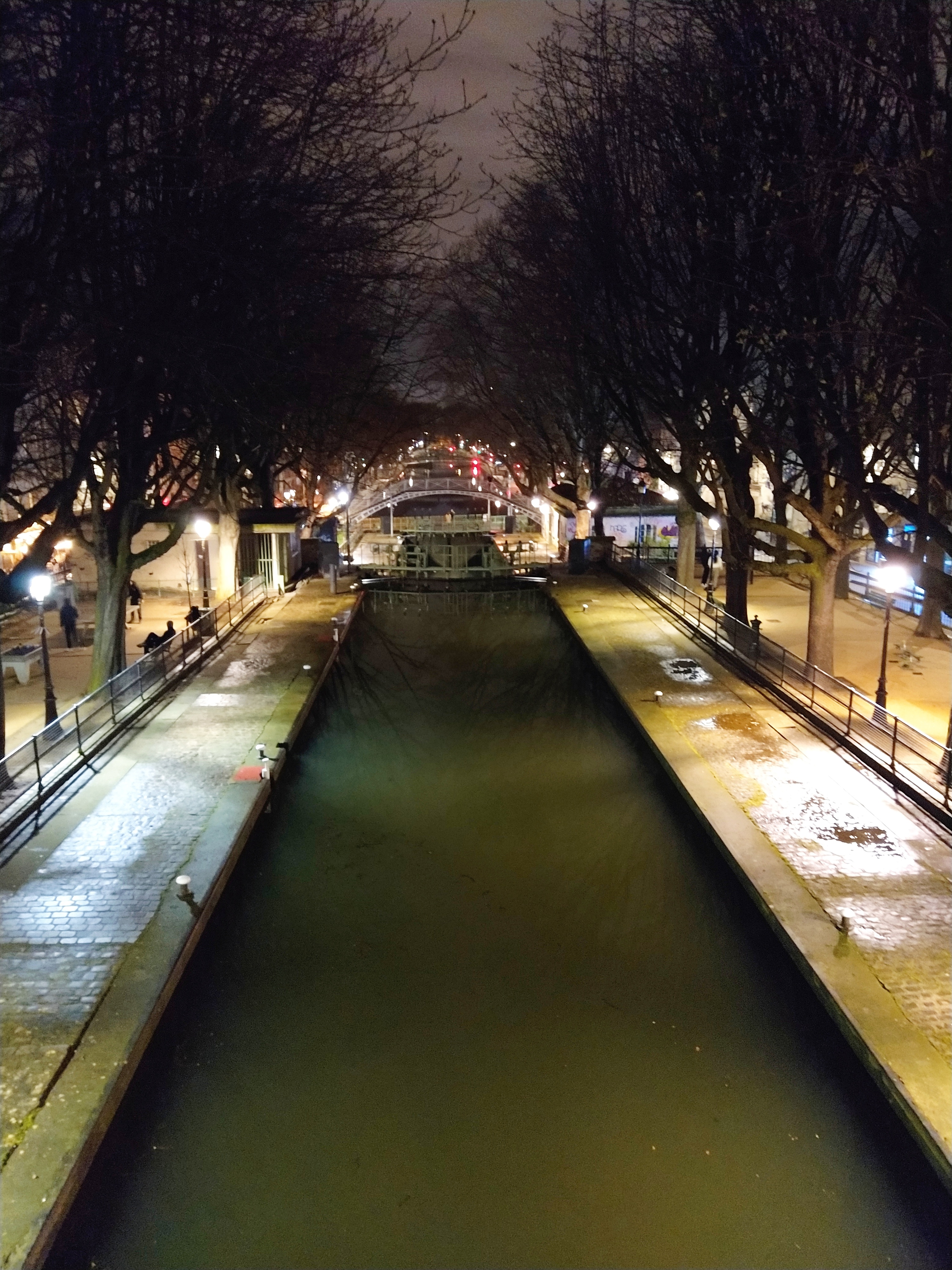 It was not too cold and the canal and its lock looked impossibly romantic under the lights.