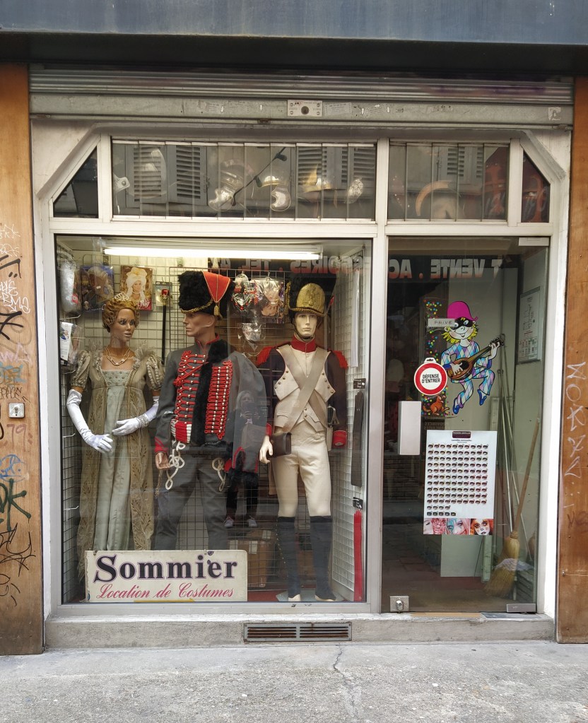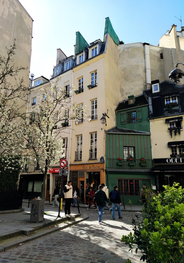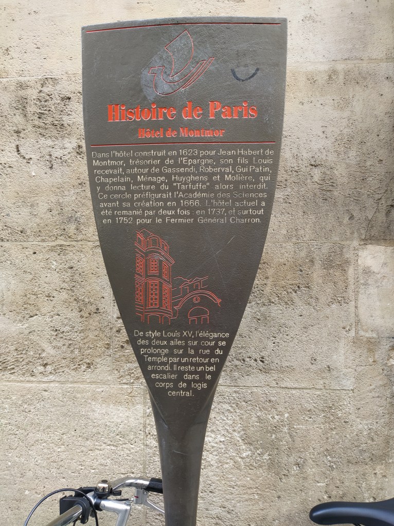 We struck off down the rue de Temple, one of the oldest streets in Paris which commemorates the area settled by the Knights Templar in the 12th century. A Templars tower, later used as a prison at the time of the revolution and housing Louis XVI and Marie Antoinette before they met their sorry end, stood near today’s metro station but was demolished by Napoleon to prevent its continuing as a royalist place of pilgrimage. About now Mr McGregor started his ‘are you sure we’re going the right way’ questioning. Over the years I’ve realised he can’t follow a map and has a very poor sense of direction so I just keep on keeping on, telling him to trust me. Hard for him, I know! 😊