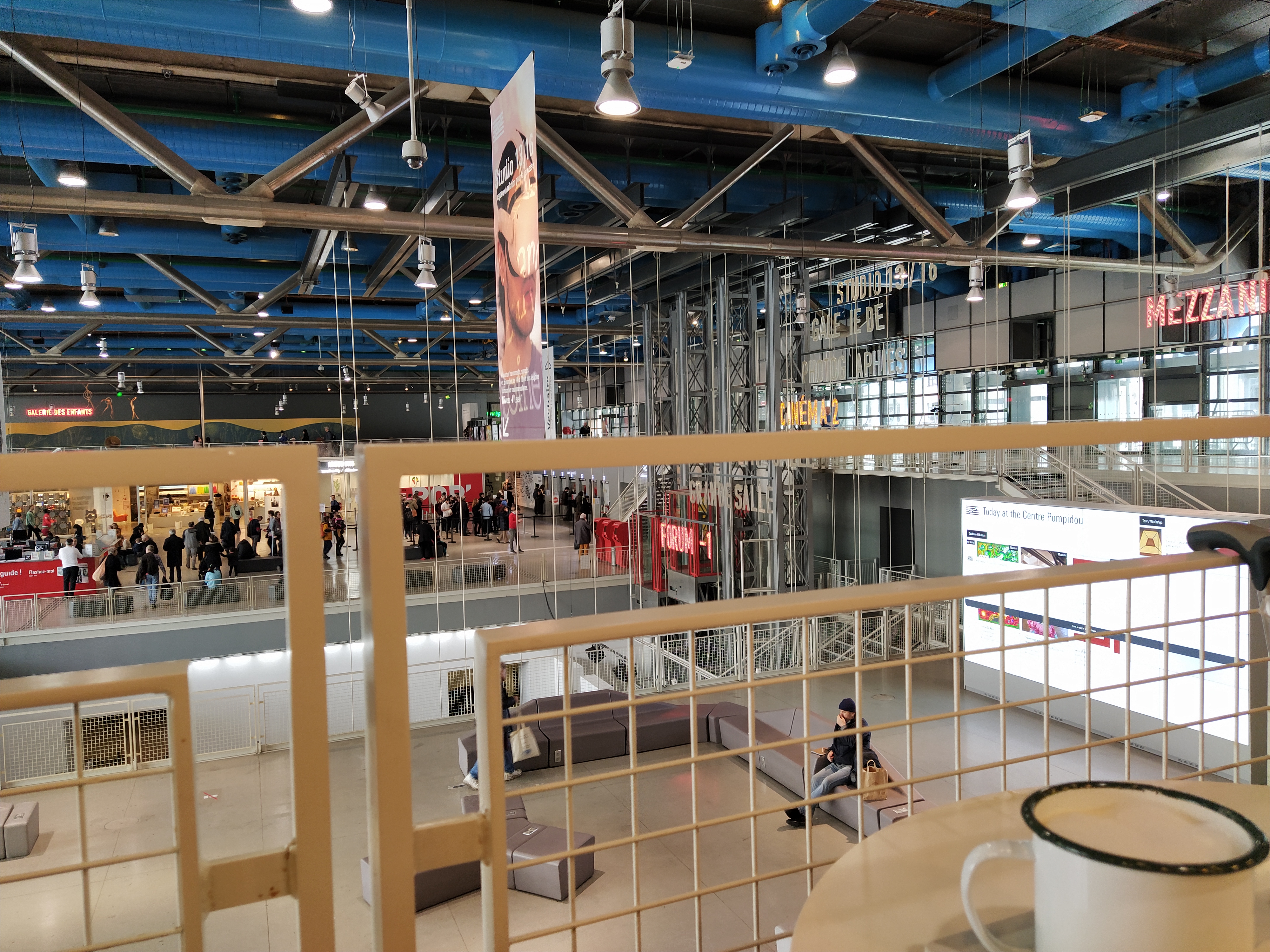 All the photos were in black and white, Mr McGregor’s preferred medium, so it was a very happy couple who finally spilled out into the filtered sunshine of the escalator tunnels. We dallied by the menu of the top floor restaurant but decided the cafe had lighter offerings so descended to the first floor noting several school groups beginning to throng the escalators.
