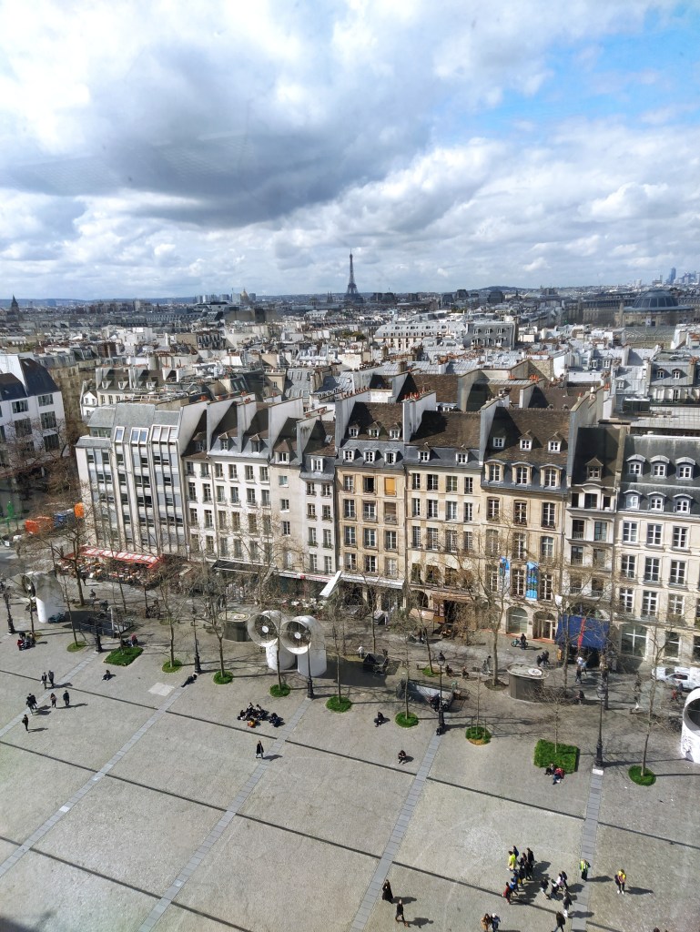 To reach the exhibition on the top floor we took the exterior escalators which treat you to an amazing panorama of the Paris skyline. We ticked off the tour Eiffel and Sacre Coeur as we gently ascended.