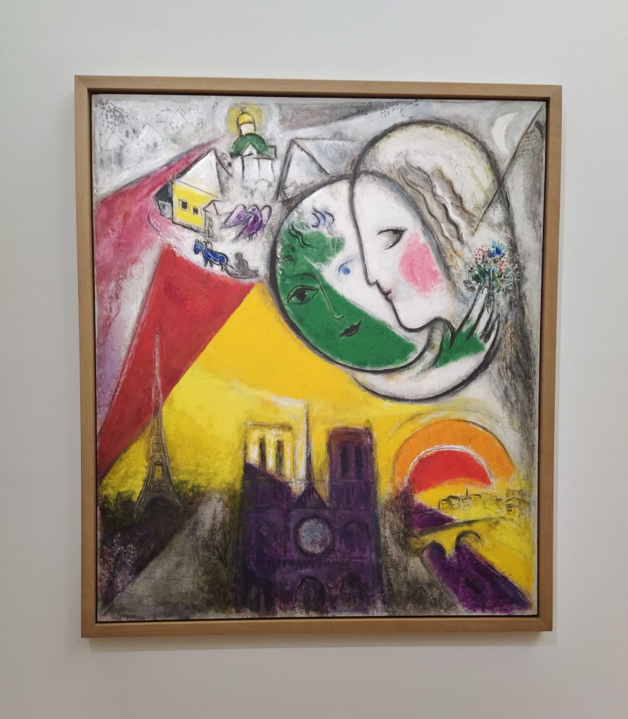I revelled in rooms full of Chagall, Kandinsky, Klee, Delaunay, Kahlo, Matisse, Mondrian….I photographed a Chagall that had images of Paris as befitting the day. I had spent last year’s birthday in a tiny chapel in the Correze visited specifically to see the stained glass windows he had designed for it.